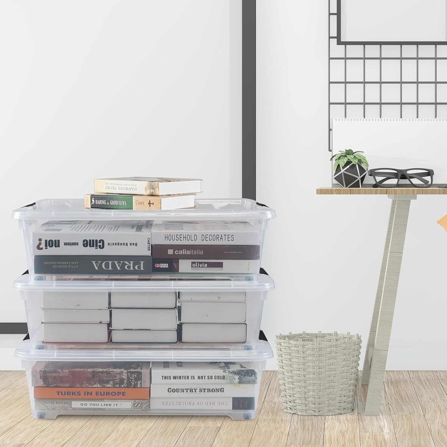 4-Pack 25 Quart Under Bed Plastic Storage Bins, Clear Under Bed Storage Box Container with Wheels