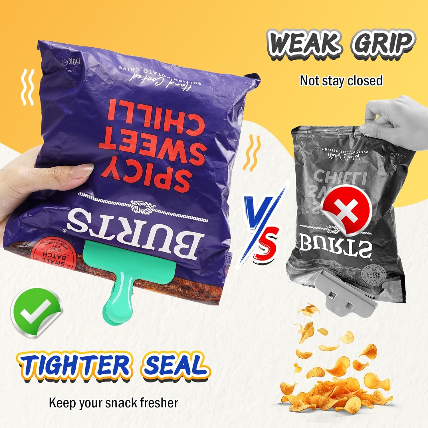 • 【Secure Seal】Made from stainless steel, including the spring, these chip bag clips ensure a tight seal for various bags, from snacks to frozen vegetables.