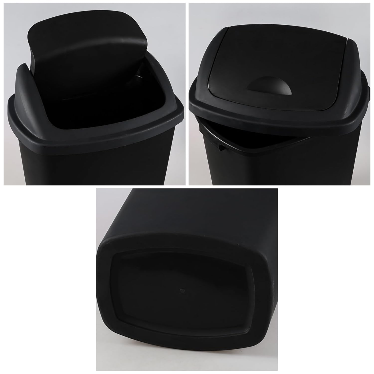 • 18 gallon plastic kitchen garbage can with black wide mouthed swing lid, smooth and elastic, very convenient to put in garbage and agilely closed to prevent odor emission