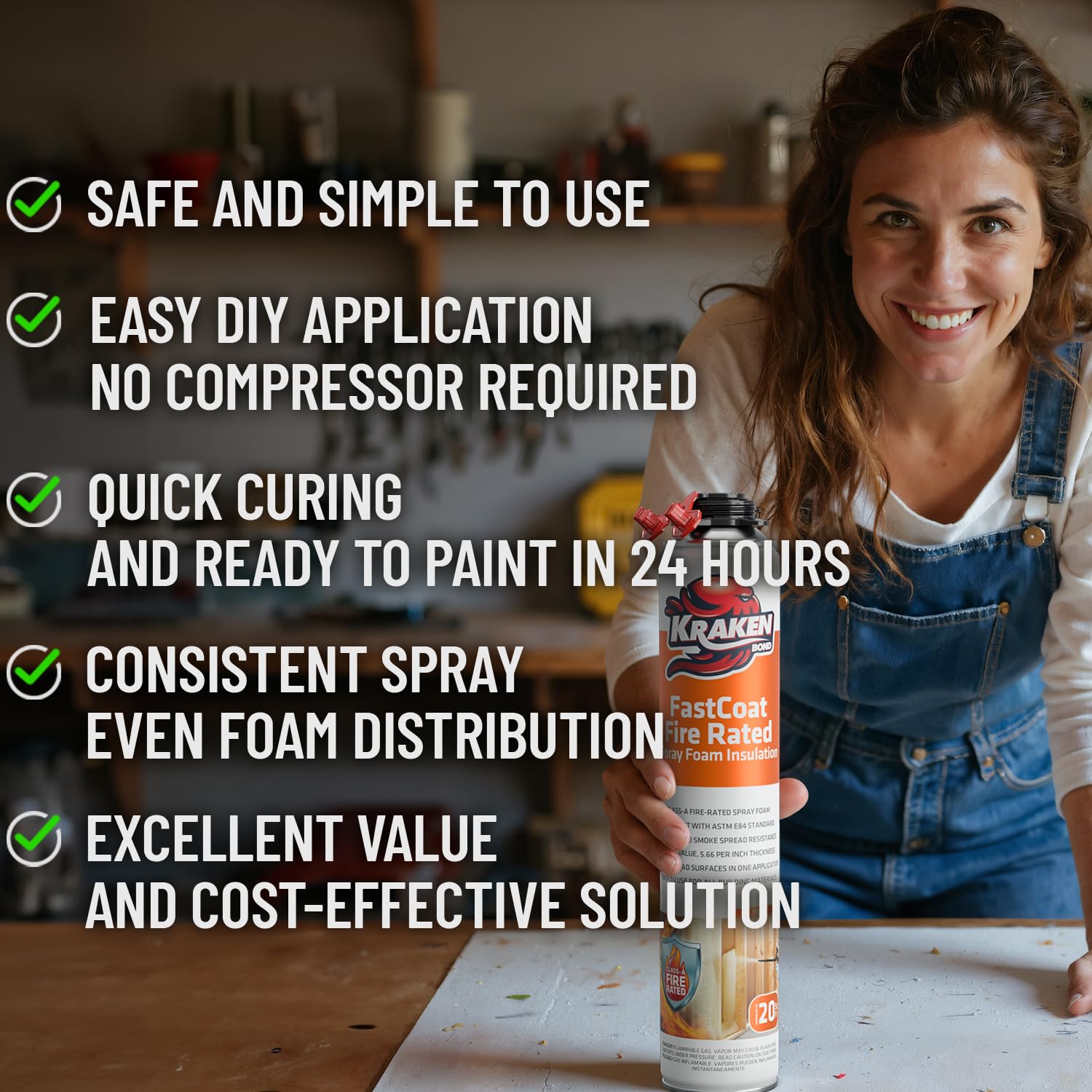 - CLASS-A FIRE RATED & HIGH-EFFICIENCY INSULATION: Kraken Bond Spray Foam Insulation Kit is Class-A Fire Rated and meets fire safety standards, including ASTM E84, ensuring enhanced fire resistance for safer applications. It also delivers superior thermal performance (R-Value 5.66/inch) and acoustic insulation, making it ideal for attics, walls, and crawl spaces—perfect for both DIYers and professionals seeking reliable, safe results.