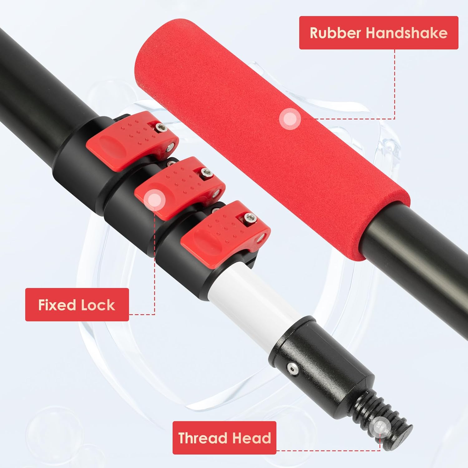 • Freely Adjustable Length: 3-stage adjustable extendable pole with lock buttons, easily extend telescopic rod to desired length and secure pole with the lock buttons, 20 feet high reach to clean spider webs up to 2nd floor outdoor.