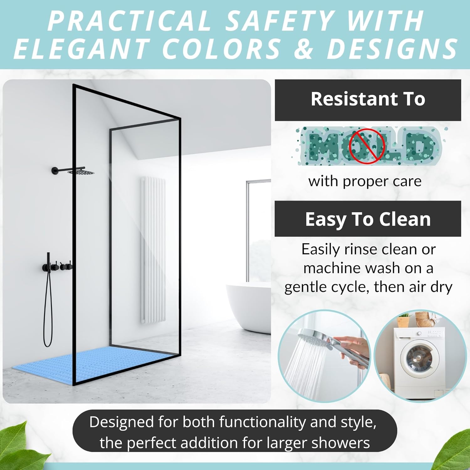 ENKOSI Extra Large Shower Mat Non Slip - 47 x 32 inch - XL Bathroom Shower Mat - Large Shower Matts for Shower Stall Floors - Secure Suction Cups and Drain Holes (47x32 Aqua Blue)