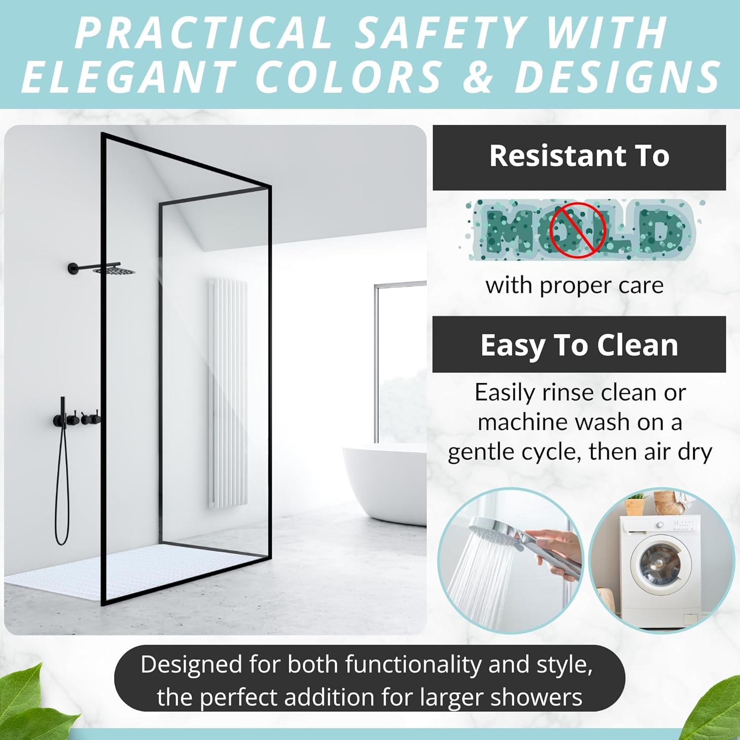 • NON-SLIP MAT enjoy 360-degree protection in your shower; prevent falls with an extra large rectangle bathroom shower bath mat for larger shower stalls with pliable suction cups for secure sticking capacity to help securely hold the shower mat to shower stall floors for safe anti-slip protection