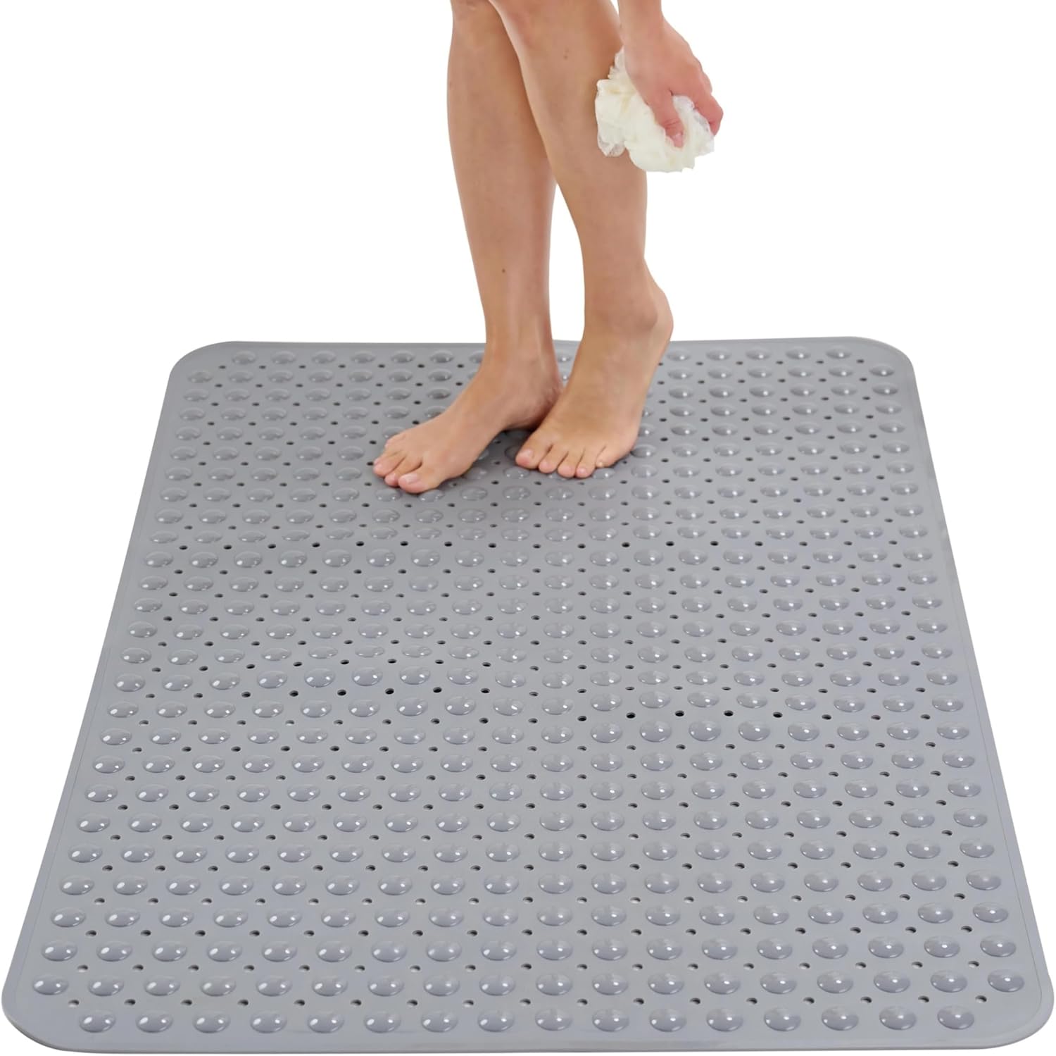 ENKOSI Extra Large Shower Mat Non Slip - 47 x 32 inch - XL Bathroom Shower Mat - Large Shower Matts for Shower Stall Floors - Secure Suction Cups and Drain Holes (47x32 Grey)