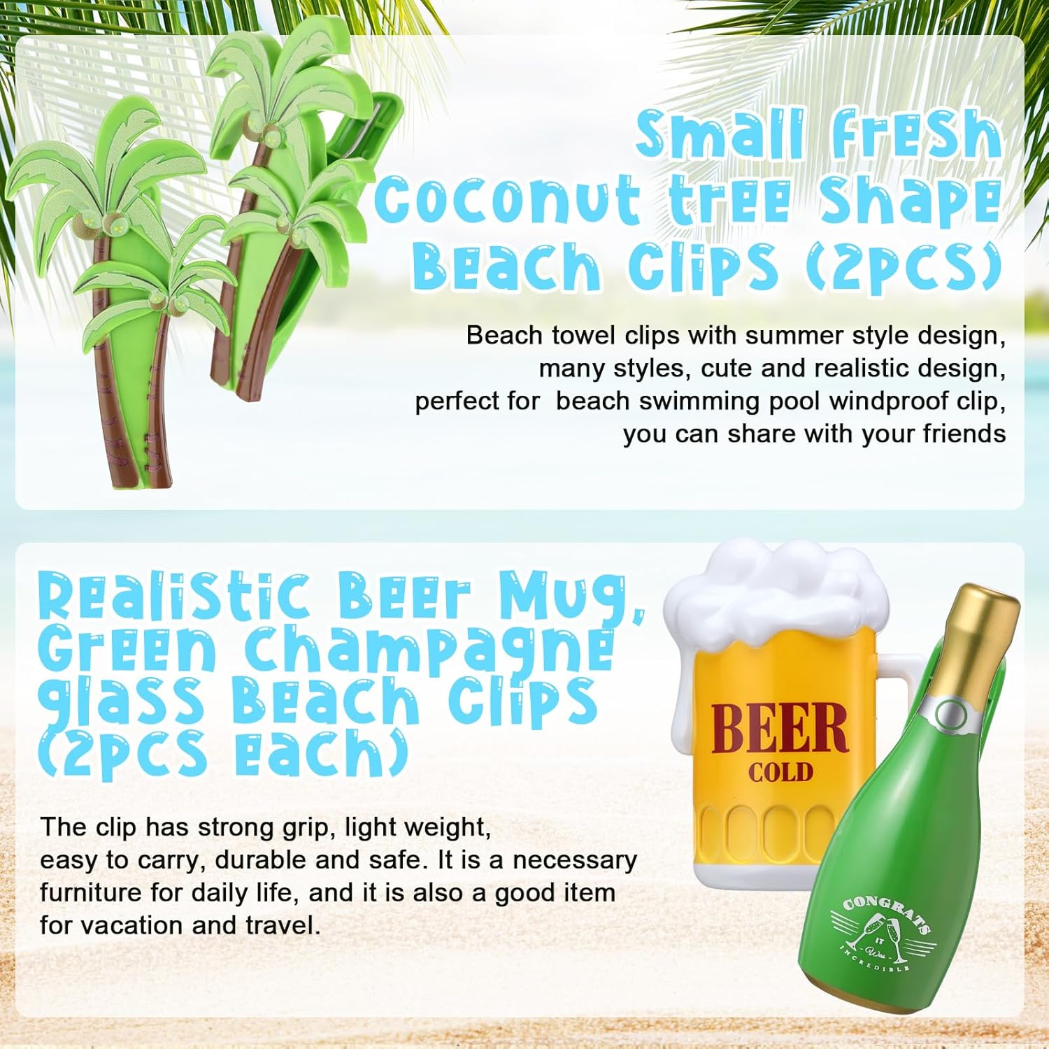 • Cute and Funny: these beach towel clips adopt palm tree, eyeglasses, cups, champagne bottle styles, look cute and funny, you can use them to clip cloths, towels or bedding