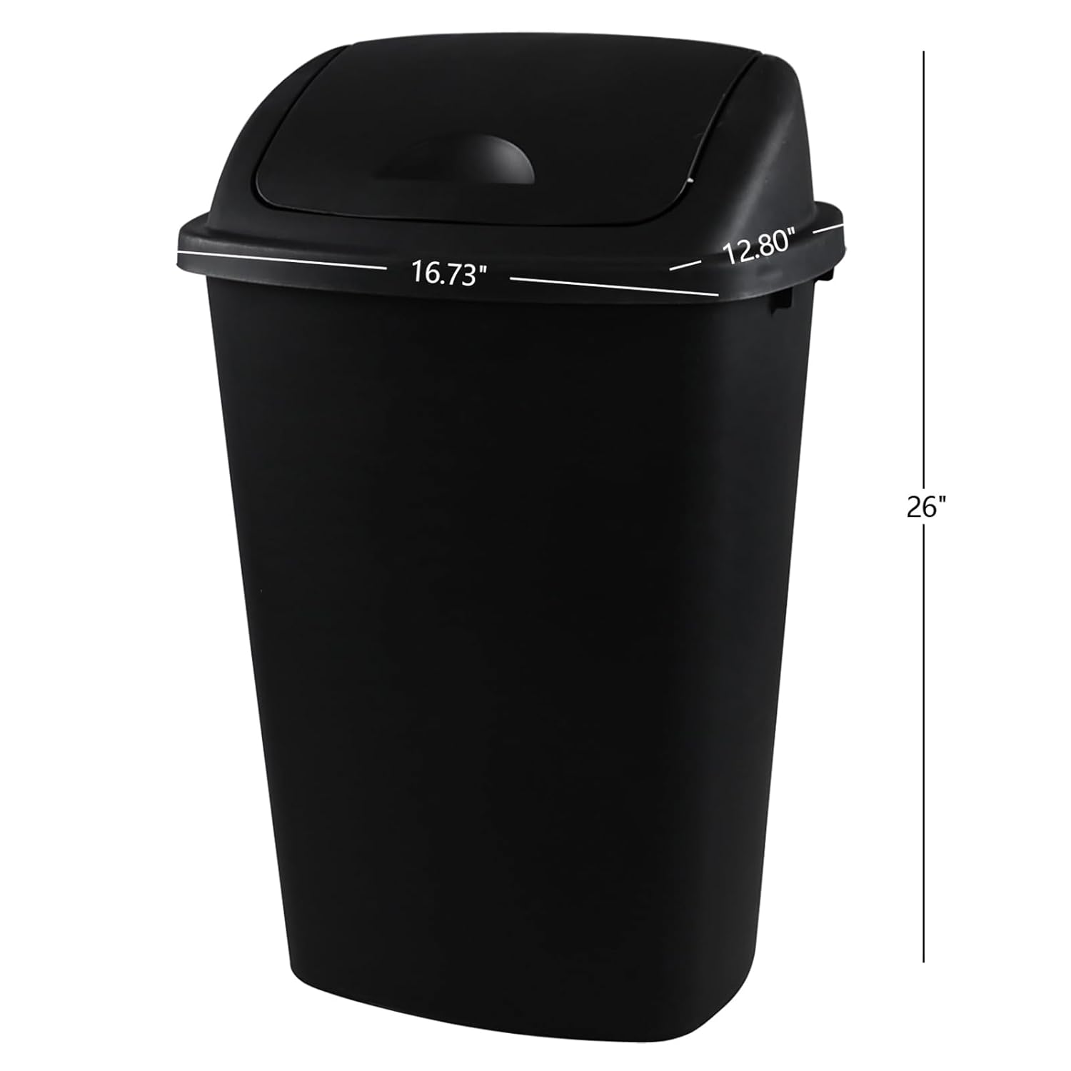 Teyyvn 13 Gallon Tall Kitchen Swing Lid Garbage Container, Set of 4 Plastic Trash Bin with Swing Top, Black