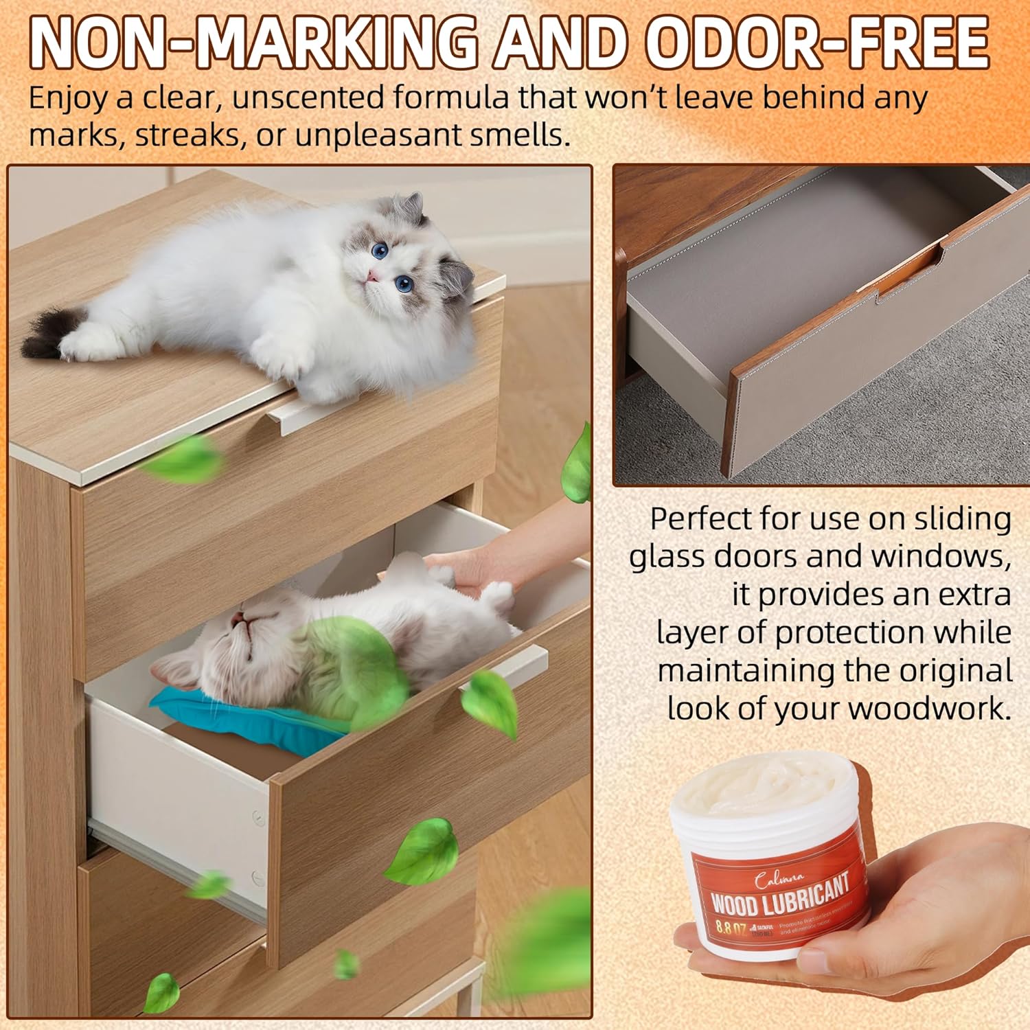 • Versatile Wood Lubricant: Ideal for lubricating various household sliding tracks, this semi-paste drawer wax undermount drawer slides, door hinges, sliding door, window tracks, and glides, ensuring smoother operation of all moving wooden parts