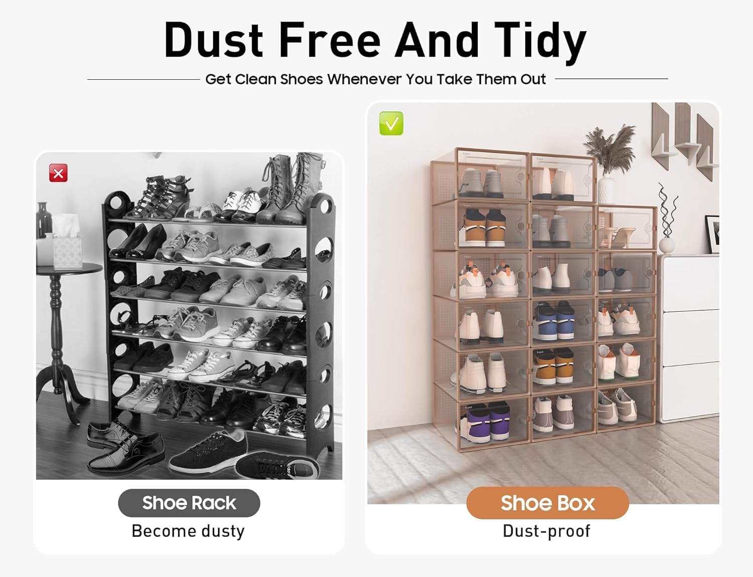 • Shoe Organizer Solutions: More dustproof than shoe racks, ventilated and breathable than shoe cabinets