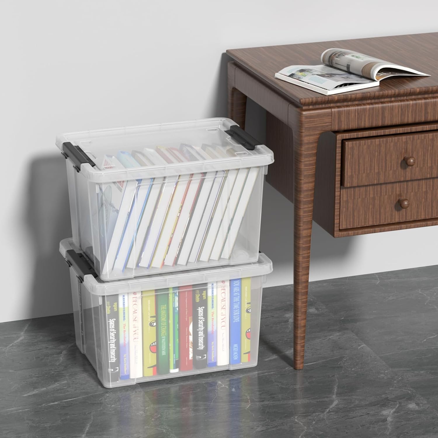 Zopnny 24 Quart Clear Plastic Storage Bin with Lid, Stackable Organizer Latch Box Tote for Home, Garage, School, and Office, 4-Pack
