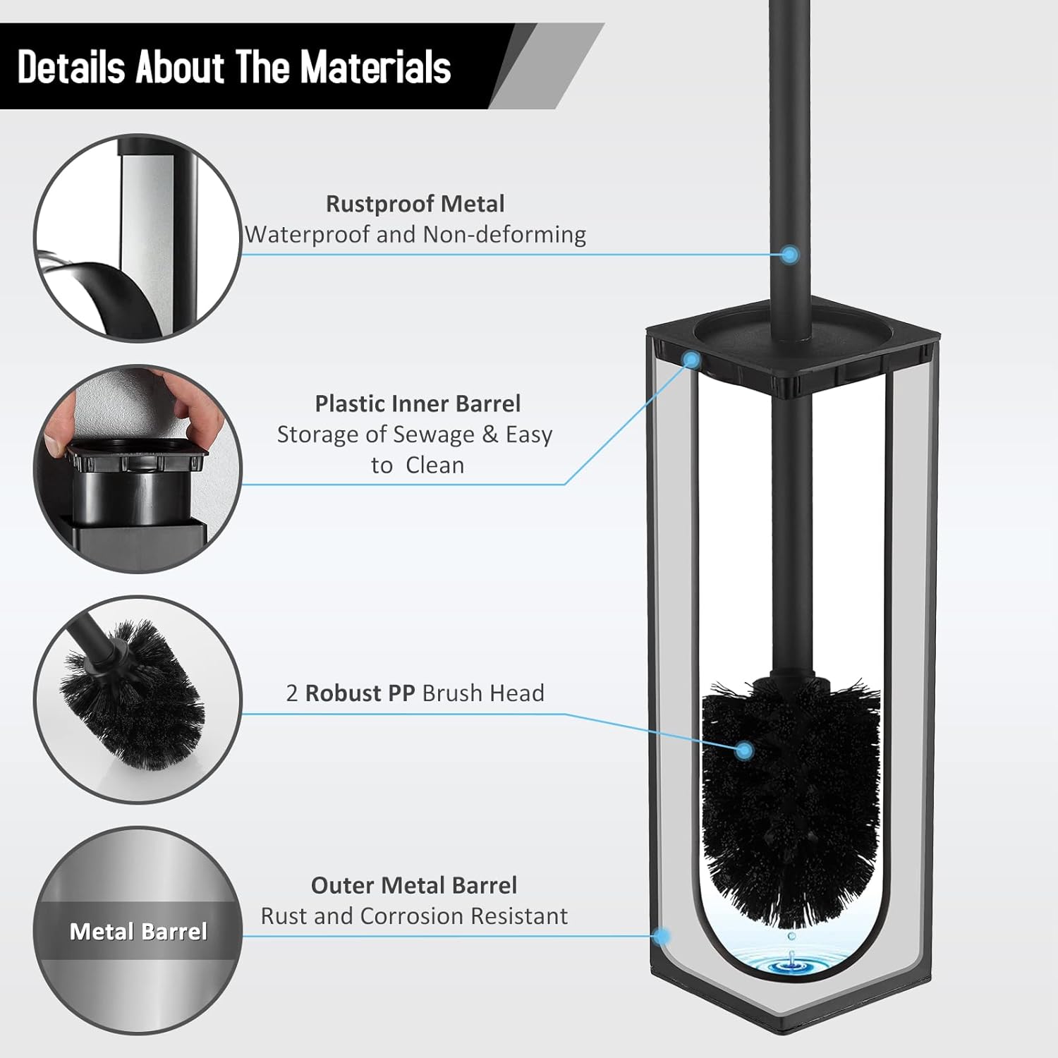 • Premium material:Toilet brush and holder made of heavy duty type stainless steel with matt black looks good sitting next to your toilet bowl; it's a great addition to your bathroom accessories and assures you can find it when you need it.