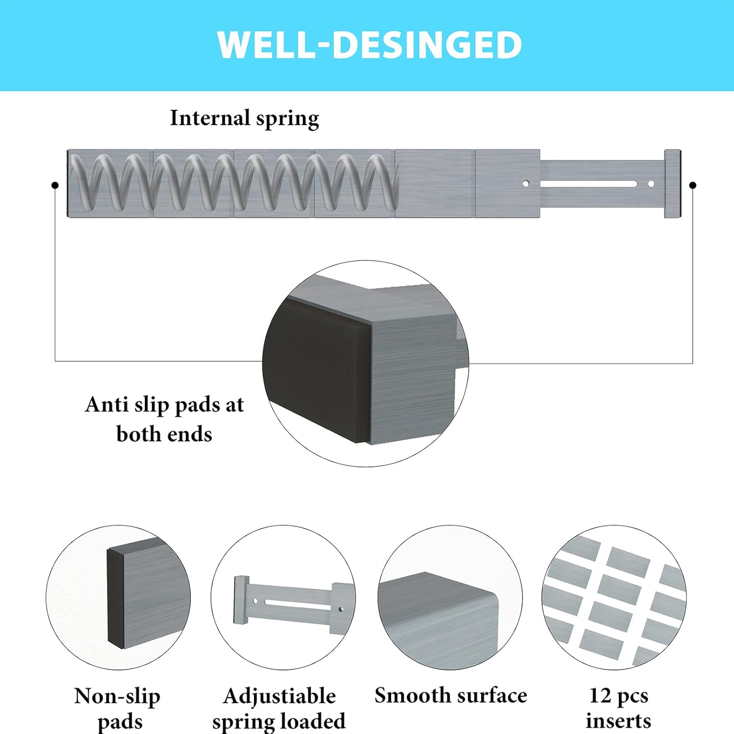 • DRAWER FRIENDLY DESIGN: The ends of our drawer dividers feature non-slip pads to keep them in place and protect your drawers from scratches, keeping your utensils, clothes and cosmetics safe enough