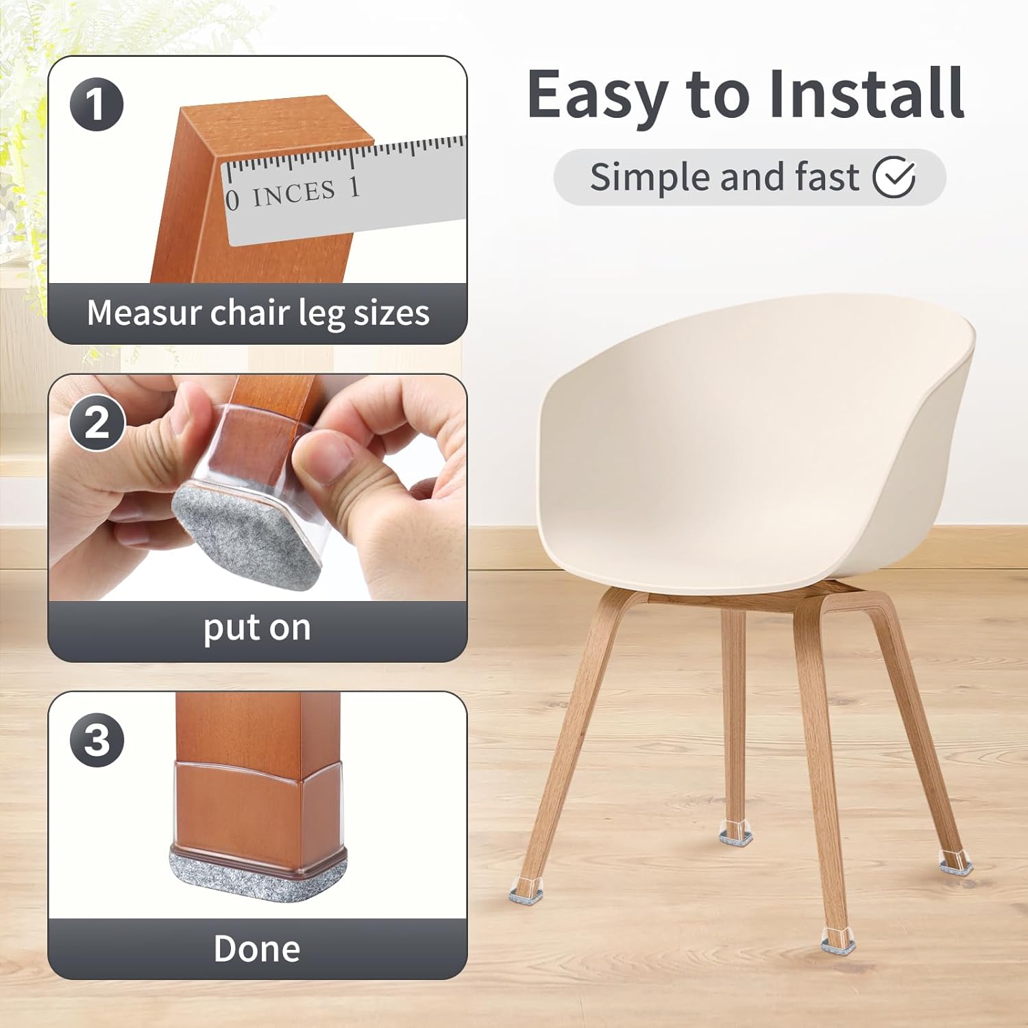 • ☛【Easy to Use】- Rectangle chair leg socks are easy to install, no tools needed. Step1: Pull it forcefully. Step2: Put on. Step3: Finish. Washable and rust-resistant for metal legs.