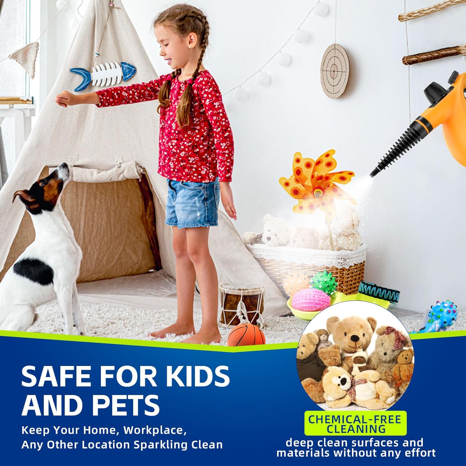 - Special Feature : Chemical Free Steam, Child & Pets Safety Cap Design Steam Cleaner, Versatile 11-Piece Accessory Kit. Portable & Easy Storage, Clean the Kids’ Room & Bathroom, Tackle Kitchen Messes, Multi-Purpose Steam Cleaner for Home Use, Lightweight and Compact, Hard Surface Steam Cleaner, Natural Steam Cleaner for Home, Car, Floor, Upholstery, Window, Shower, Grout, Tile, Grease, Multi-Surface Steam Cleaning Attachments, All-In-One Steamer Can Deep Clean For Your Home, Powerful Hot Easy Use Steam Cleaner, Quick Heat Uptime & Continuous Steaming Handheld Steamer Chemical Free Steam, Child & Pets Safety Cap Design Steam Cleaner, Versatile 11-Piece Accessory Kit. Portable & Easy Storage, Clean the Kids’ Room & Bathroom, Tackle… See more