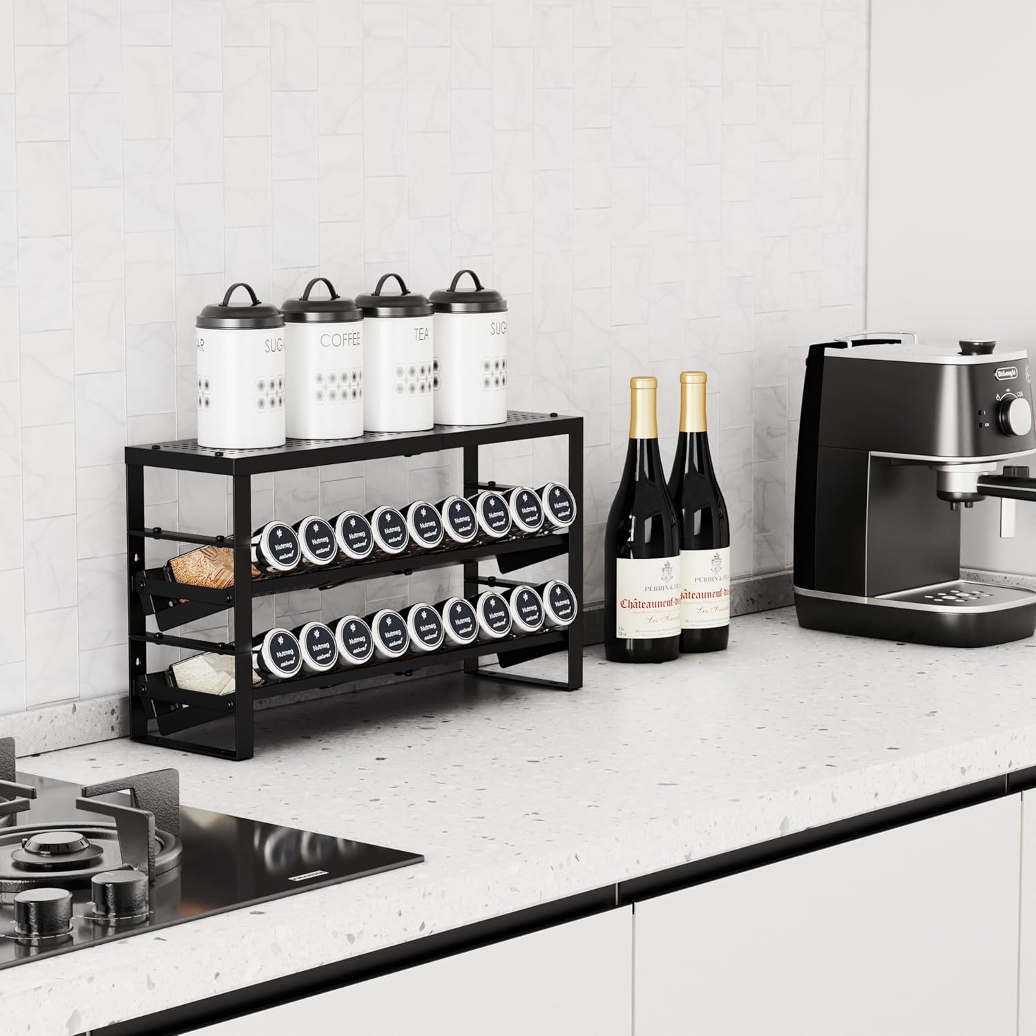 • ⭐【Easy Access & Visibility】The inclined shelves are angled for optimal viewing and effortless grabbing of spices. This innovative design ensures you can quickly locate and access the spices you need without creating a mess.