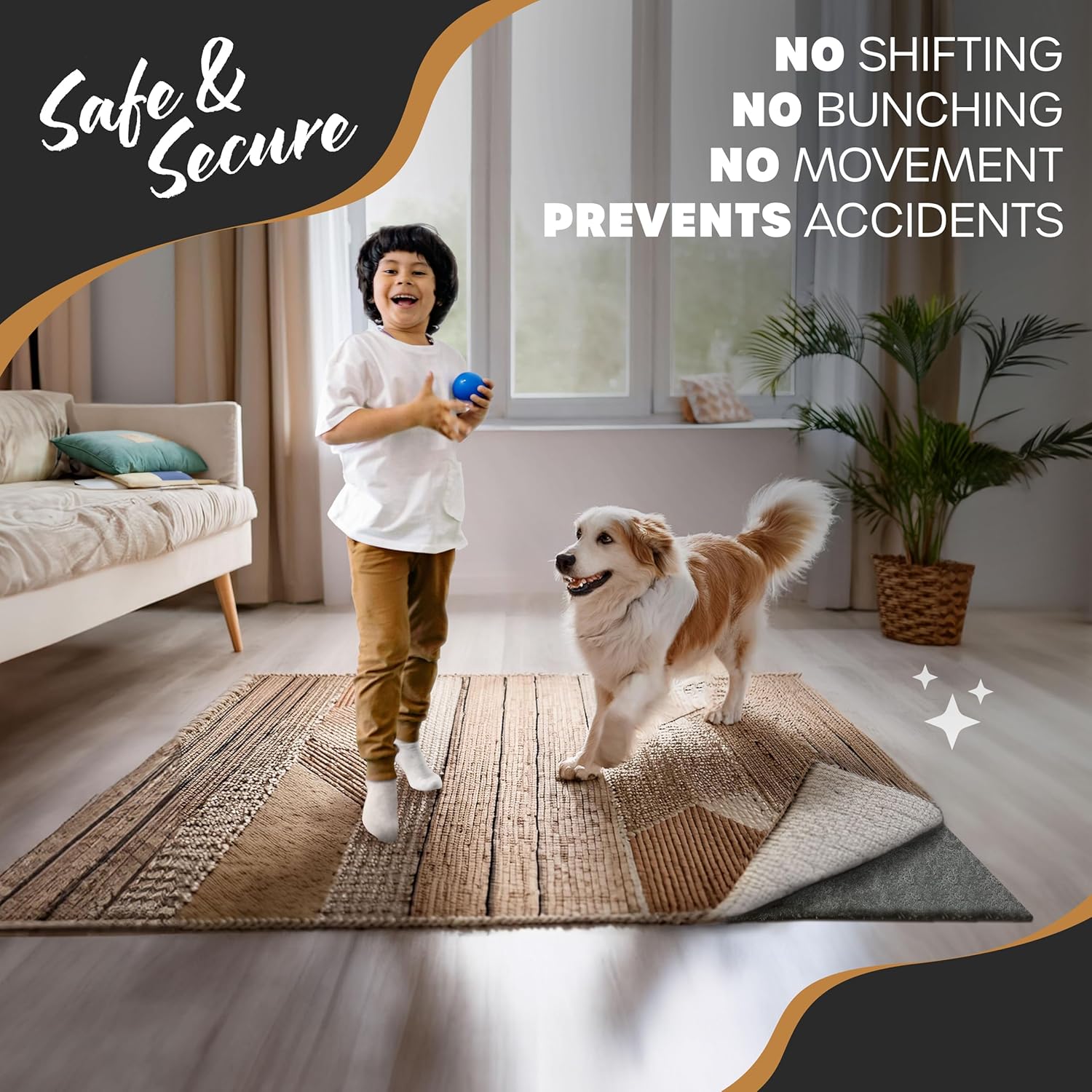 - CUSTOM-FIT & EASY MAINTENANCE NON SKID RUG GRIPPER : Easily customize your rug liner non slip carpet pad , thanks to its trimmable design. Use household scissors to adjust your under carpet padding for the perfect fit with any rug size or style. Wherever you use them, these dependable rug stays for hardwood & other surfaces keep coverings flat, even during vacuuming! Whether in the living room, kitchen, or bedroom, our versatile carpet grippers for hardwood floors improve both comfort & style.