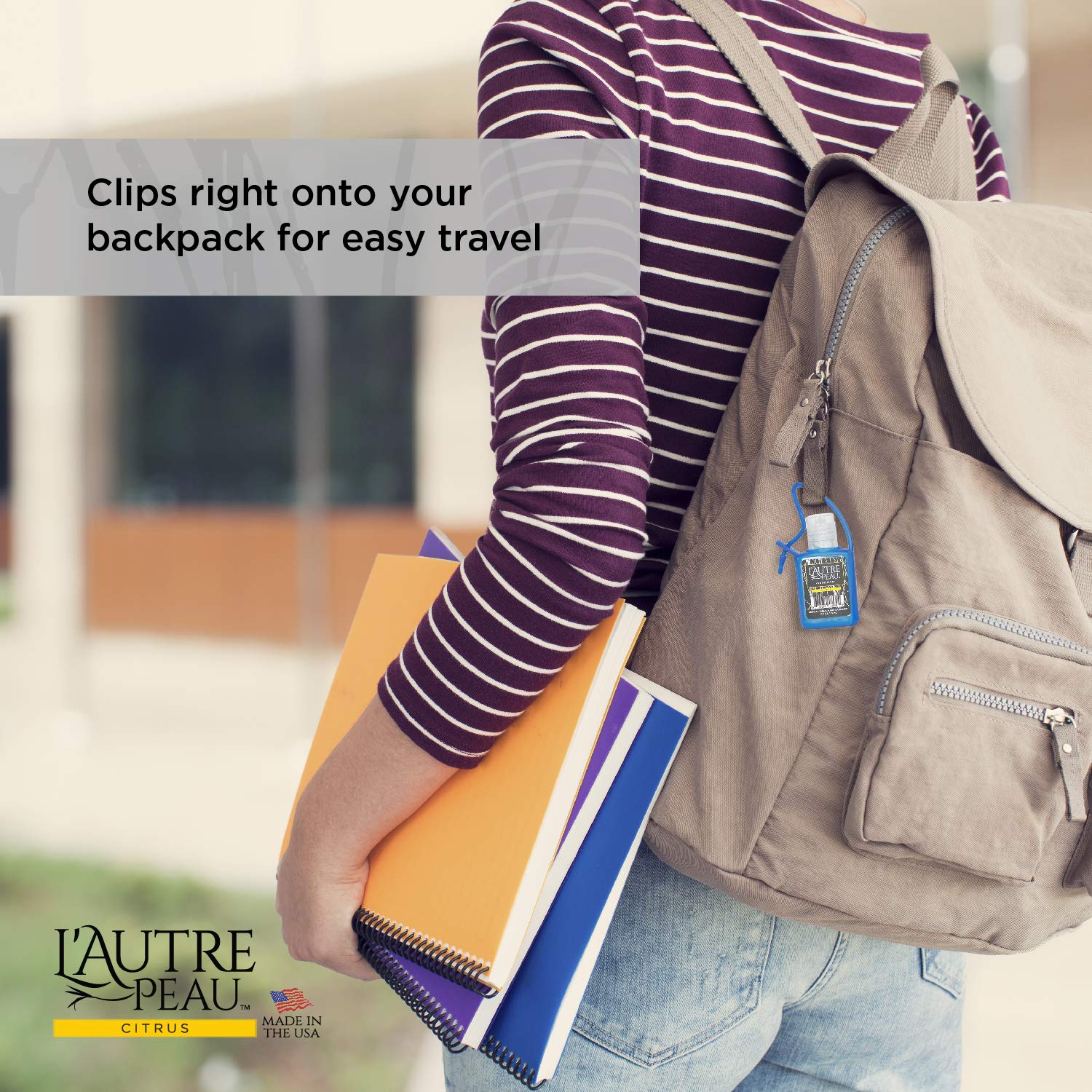 • Attach this 0.5 fl oz bottle to your purse, gym bag, diaper bag or briefcase. Reach for the L'Autre Peau bottle when you need to refresh or clean up in a hurry