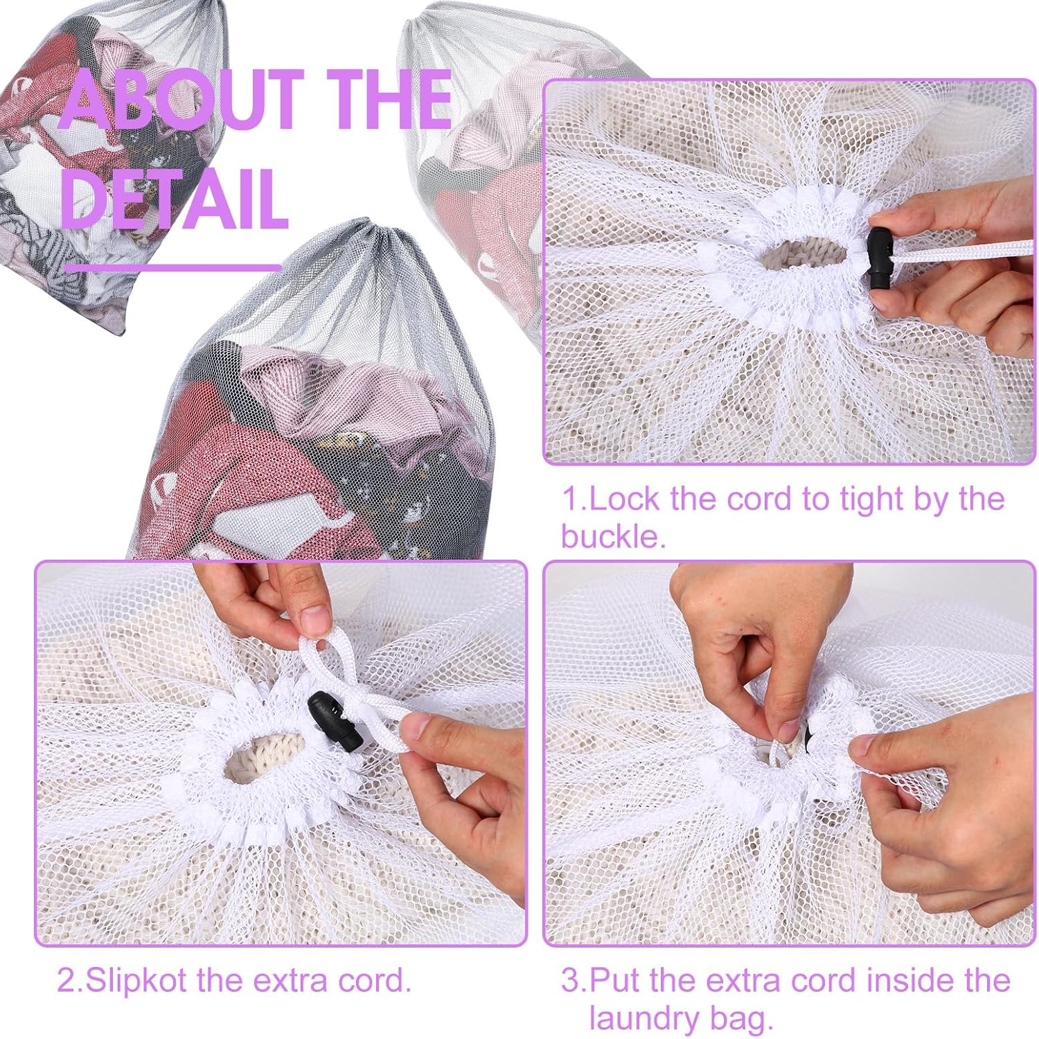 • Drawstring Locking Closure: the mesh bag has a locking buckle and drawstring buckle to prevent overflow; If you are using them as a laundry bag, tuck the buttons inside the bag to prevent the drawstring from loosening in the washing machine