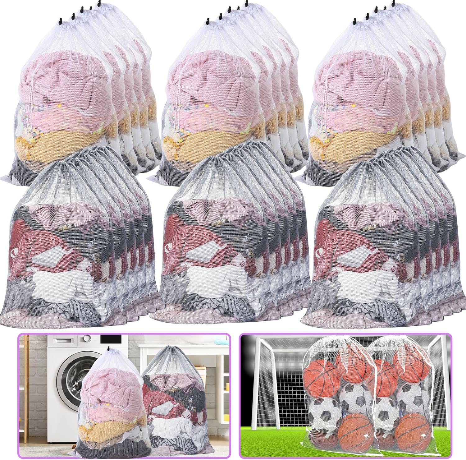Berlune 30 Pack 24 x 36 Inches Large Mesh Bags for Laundry, Wash bags, Sturdy Mesh Material Closed with Drawstring, Factory, University, Dormitory, Travel and Apartment Dweller (White, Gray)