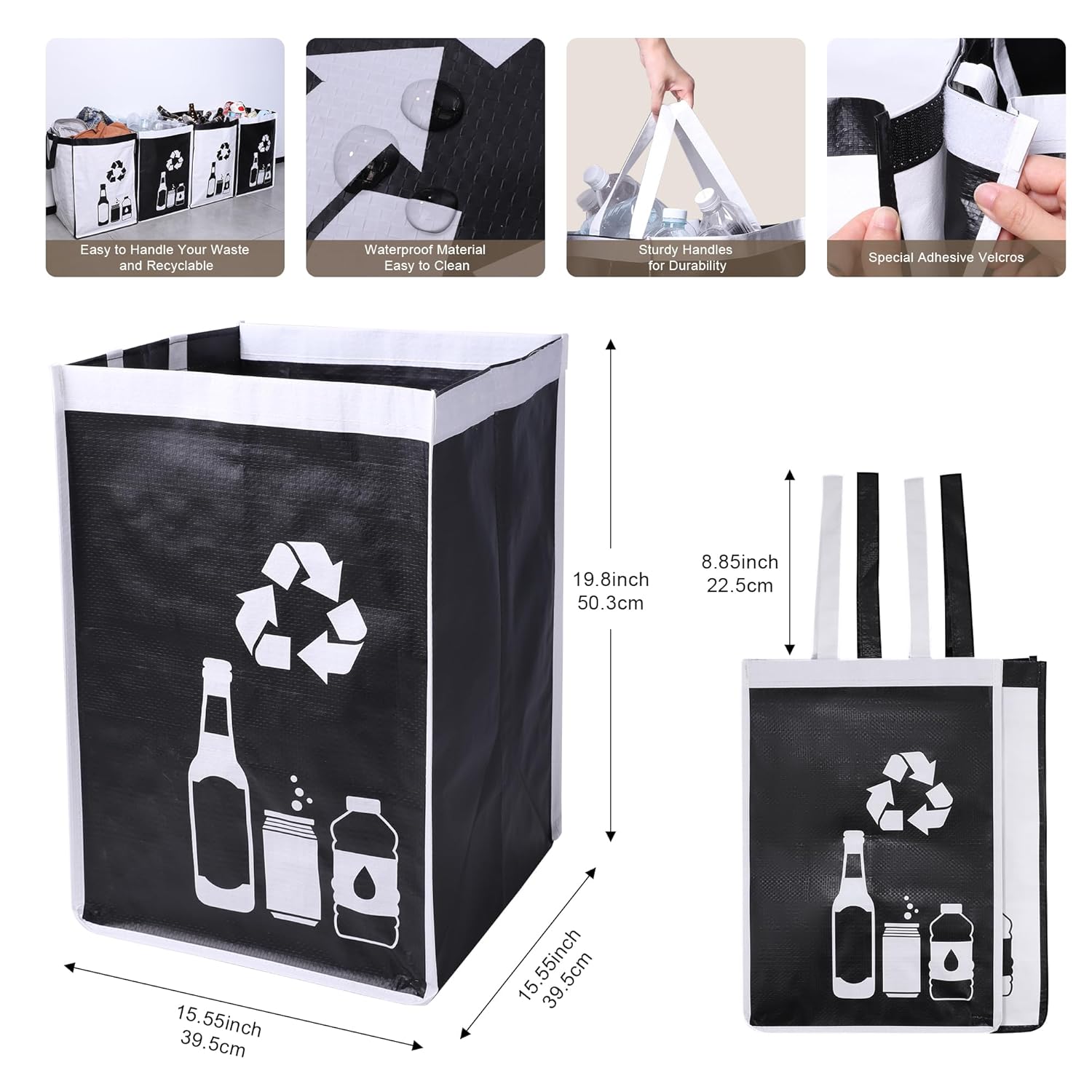 Large Recycle Waste Bag for Kitchen Home- Large Indoor Recycling Bins Trash Sorting Organizer, Reusable and Waterproof, 2 Pack