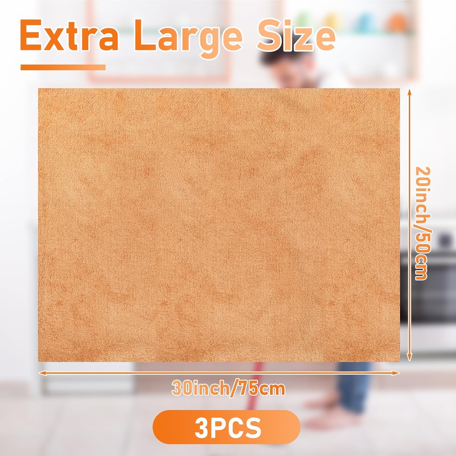 Newwiee 3 Pcs Extra Large Microfiber Cleaning Cloth 30" x 20" Washable Reusable Microfiber Towel Streak Free Lint Free Cloth for Cleaning Home Glass Office Window Bathrooms (Light Green,Blue,Orange)