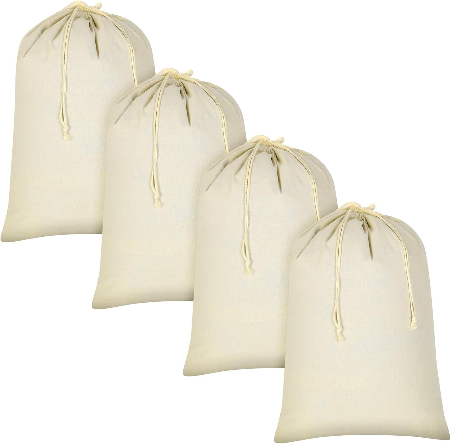 4 Pieces 28" x 36" Canvas Laundry Bags Bulk Large Cotton Laundry with Drawstring Heavy Duty Hamper Liner Washable Dirty Clothes Santa Bag for Travel Household