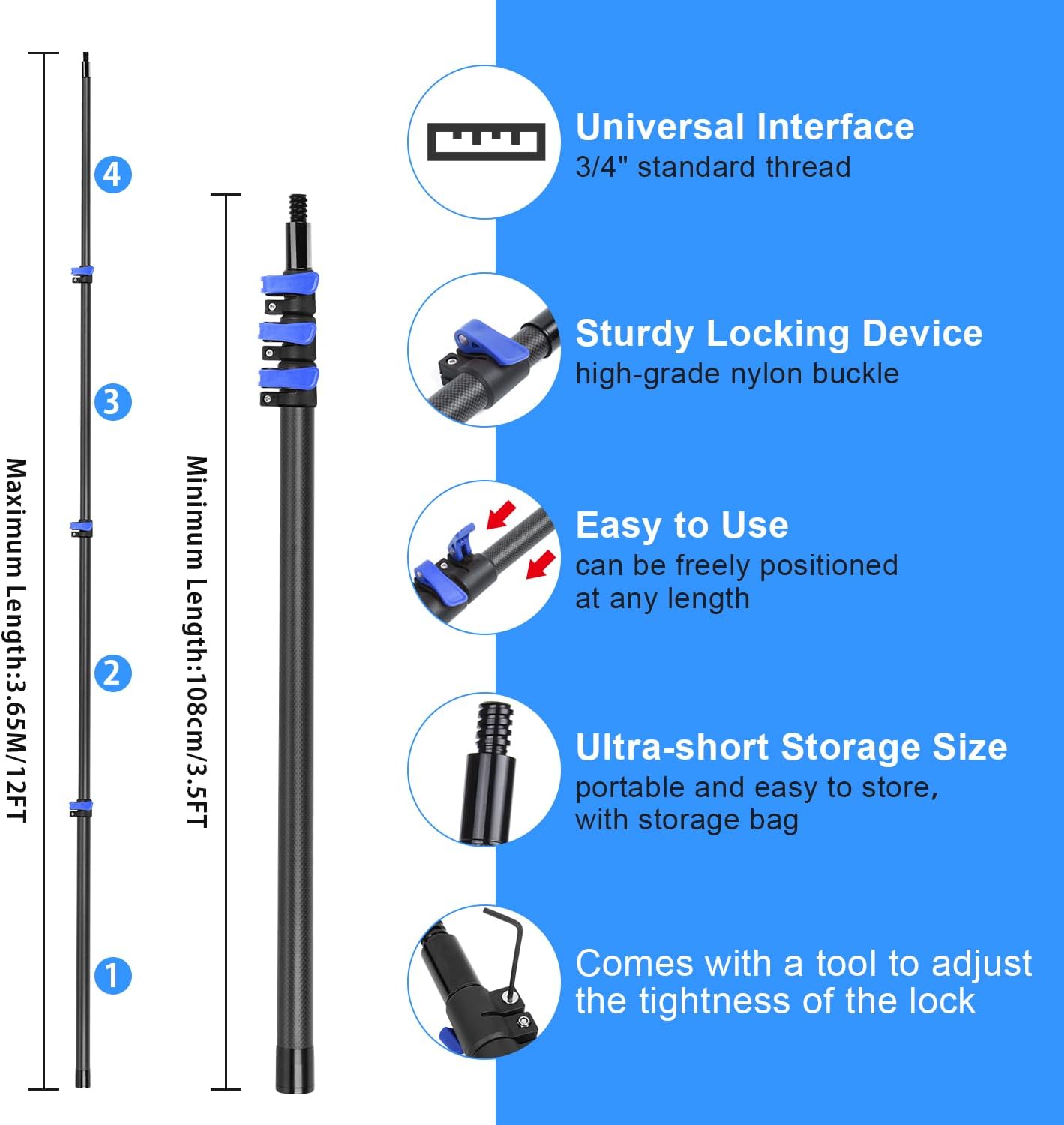 • 【Carbon Fiber Material】Compared with aluminum, carbon fiber has higher strength and rigidity. Our extension rod is made of carbon fiber material, which improves the bending and breaking phenomenon of traditional poles during use. The rust-proof and high-temperature resistant properties of carbon fiber make the pole more reliable and long-lasting.