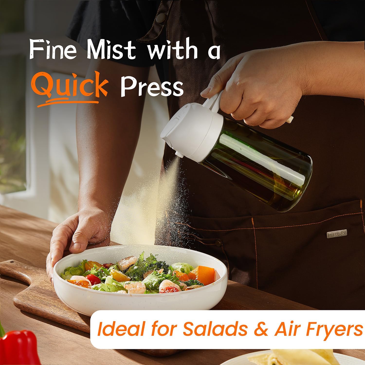 • Versatile Kitchen Tool: Combining the convenience of pouring and spraying in one bottle, this multifunctional design streamlines your cooking process. Whether you need a precise cooking spray for air frying or a controlled pour for stir-fries, it’s a practical addition to your kitchen appliances, keeping your kitchen clean and efficient
