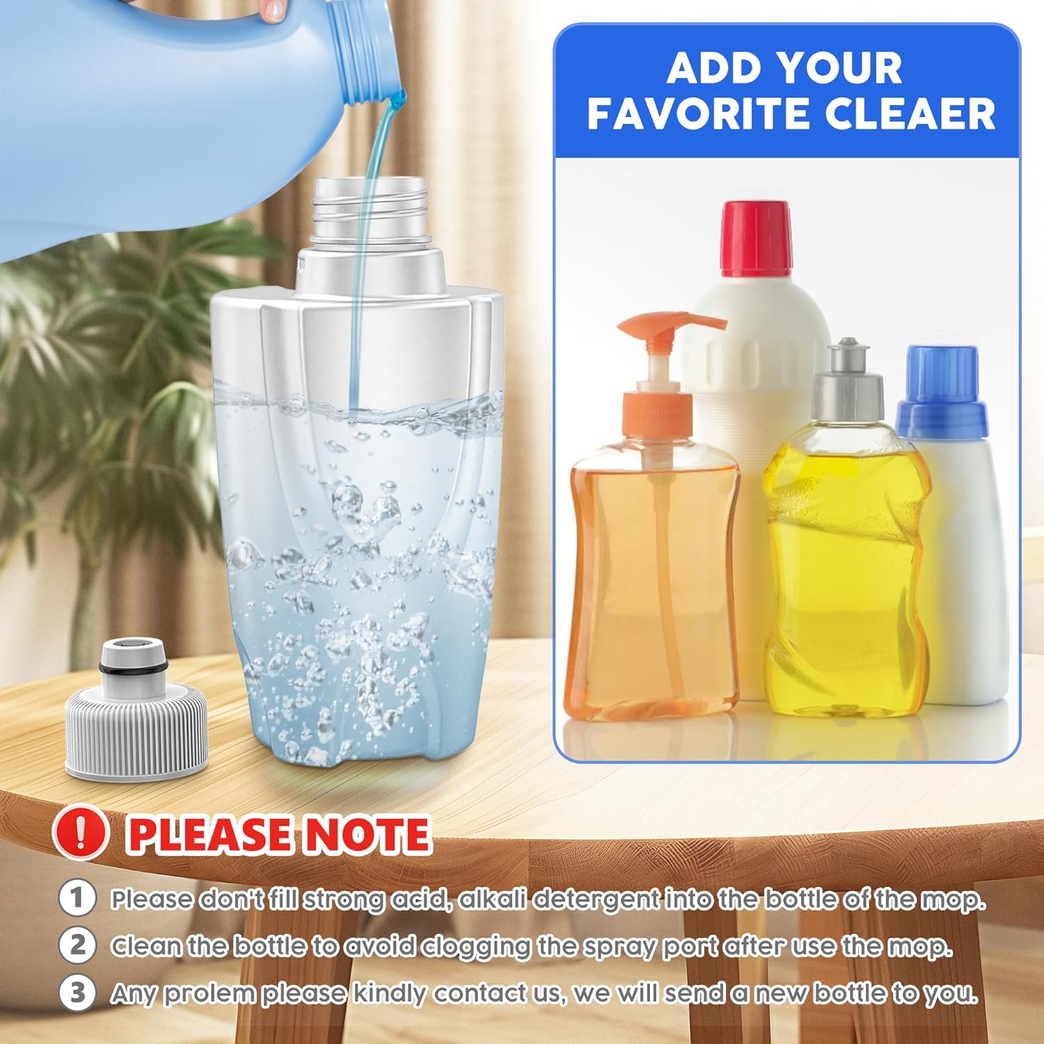 • Flat mop with refillable bottle: add your favorite detergent or water for an eco-friendly and money-saving solution