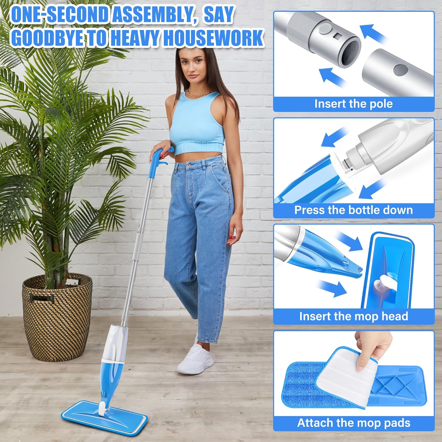 • Multi-Scene Spray Mop: Perfect for apartments, homes, and commercial spaces, including kitchens, bathrooms, restaurants, offices, and studios