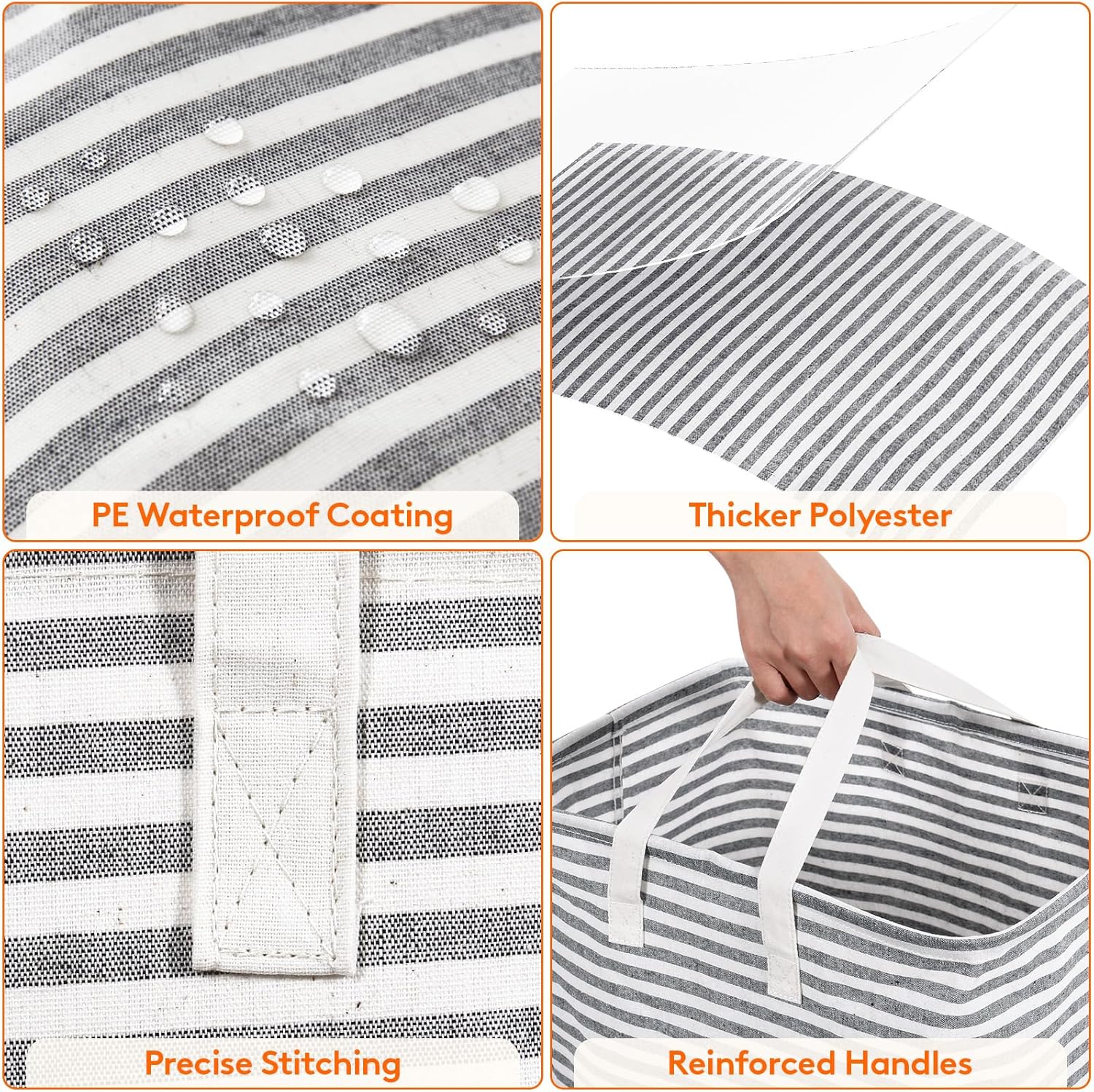 • Reinforced Handles: The 2 handles are reinforced with strong stitching and are long enough for carring with 1 or 2 hands. While full of items, our large hampers for laundry can also be easily carried up and down stairs or to a laundromat with ease.