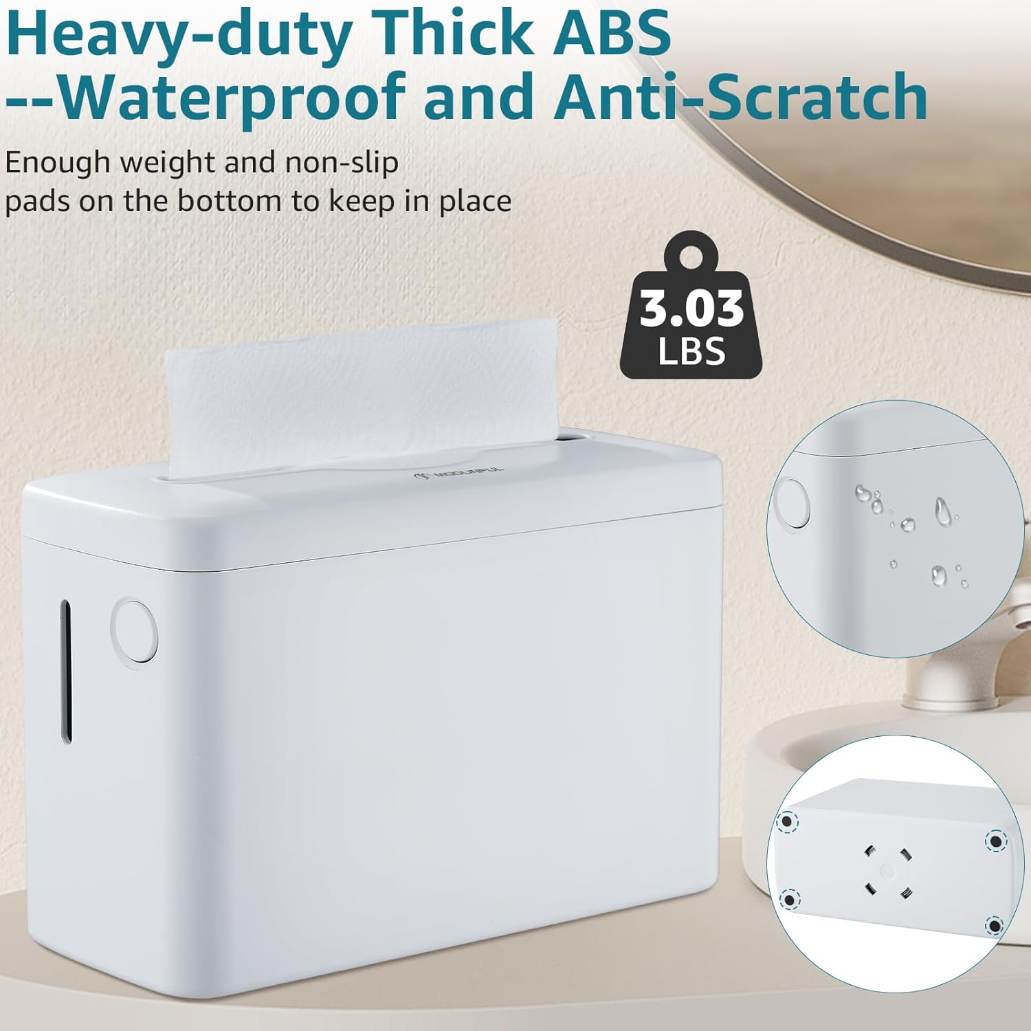 • 【Heavy Duty ABS Material】Waterproof, smooth, anti scratch, durable. Size: W 12.79" H 8.46" D 5.51", Towels Tray Size inside: L 10.62" W 4.13" (Suitable paper towels size for reference), Weight: 3.03 pounds, with 4 sticky non-slip pads on the bottom, DOUBLE power to keep the paper towel dispenser countertop in place. Suitable for almost multifold paper towels.