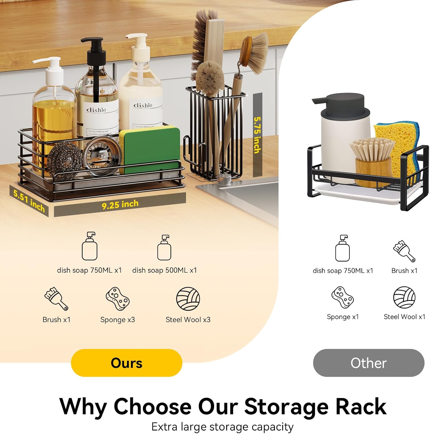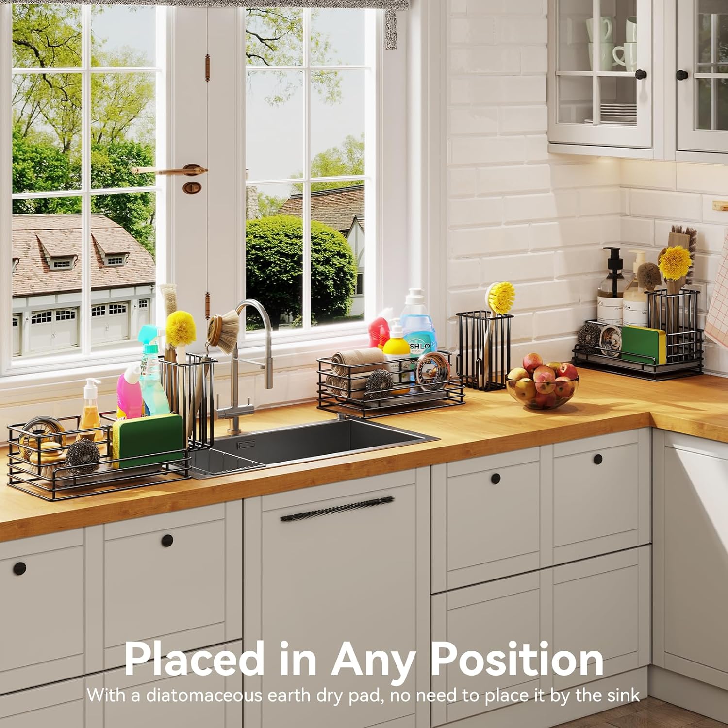 • Anti Slip Sink Rack: Our sink caddy will not slide and can be fixed for a long time without worrying about the sliding and stability of this kitchen sink storage rack.