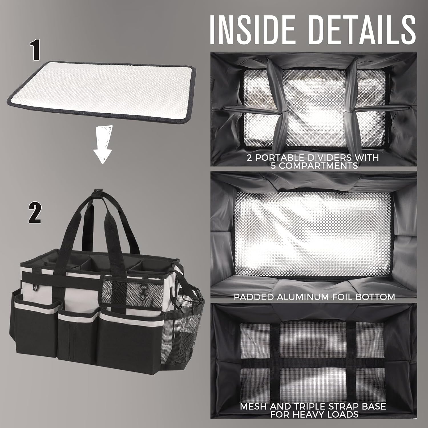 - Special Design: The wearable cleaning caddy bag comes with 2 adjustable dividers for you to customize the internal layouts of the bag. Also, equipped with aluminum foil pad bottom to keep the bag dry and clean. No more worried about damp, grime or bad smells where your cleaning products are stored