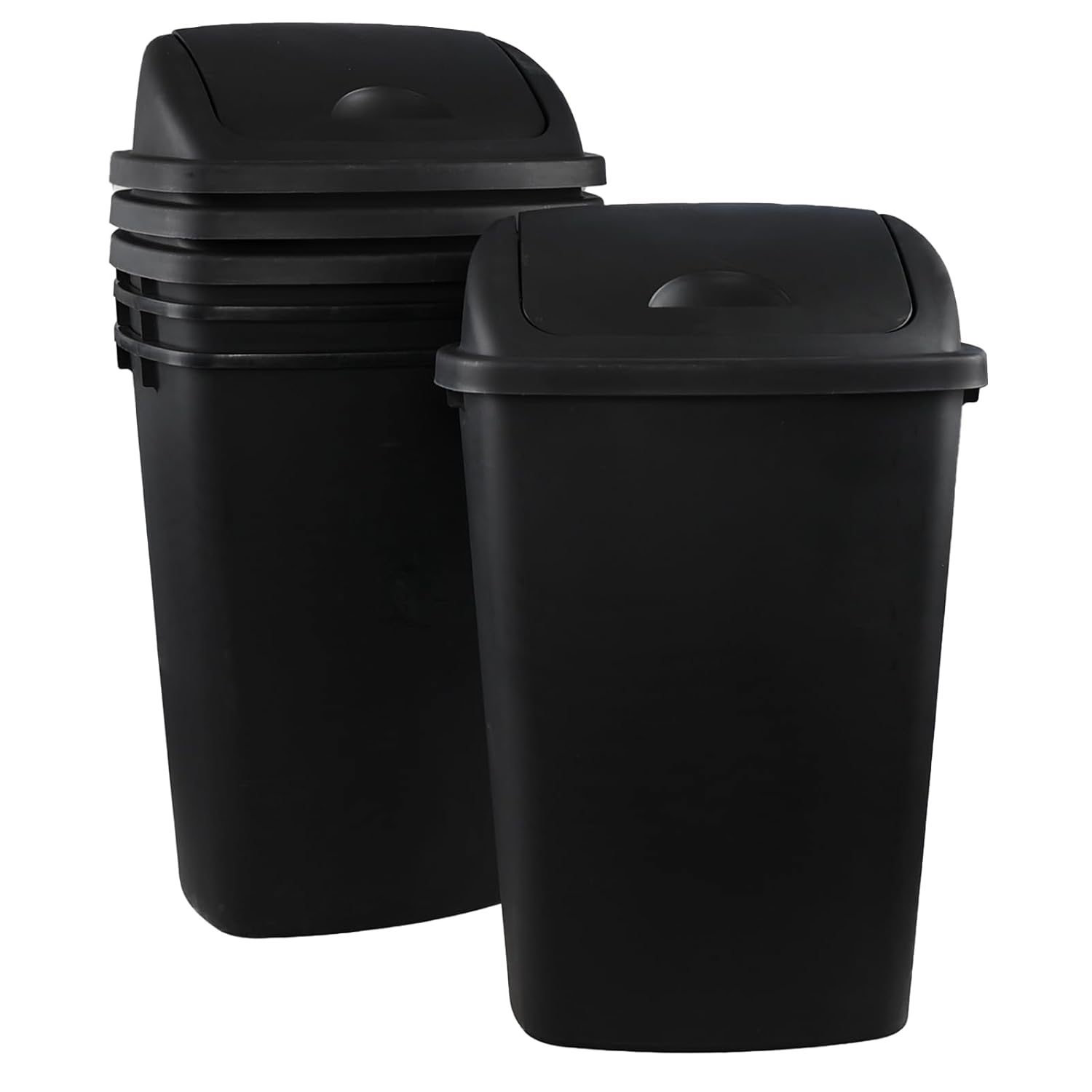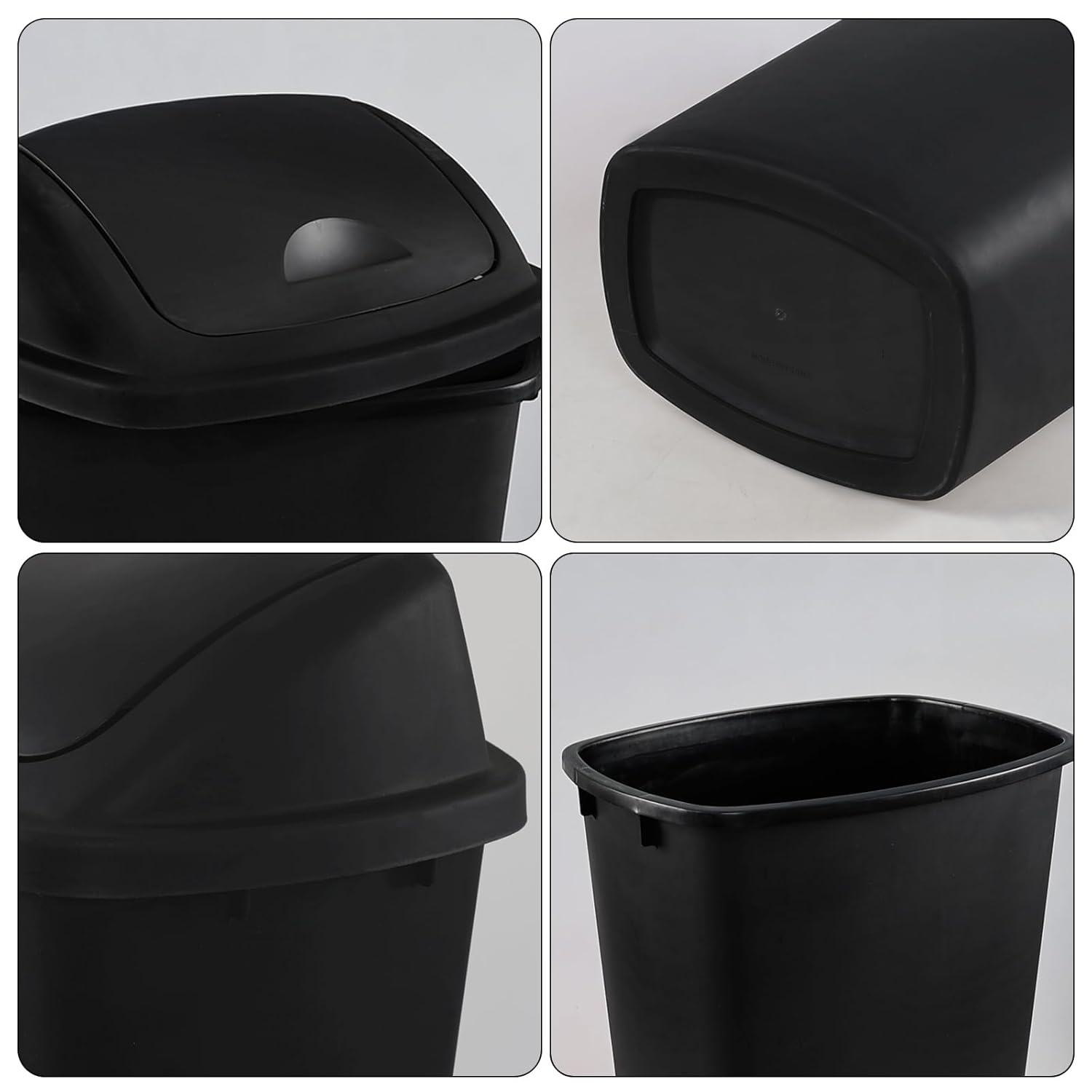 4-Pack 13 Gallon Plastic Swing Top Trash Can, Lidded Wastebasket Garbage Can for Kitchen, Garage, or Workspace, Black