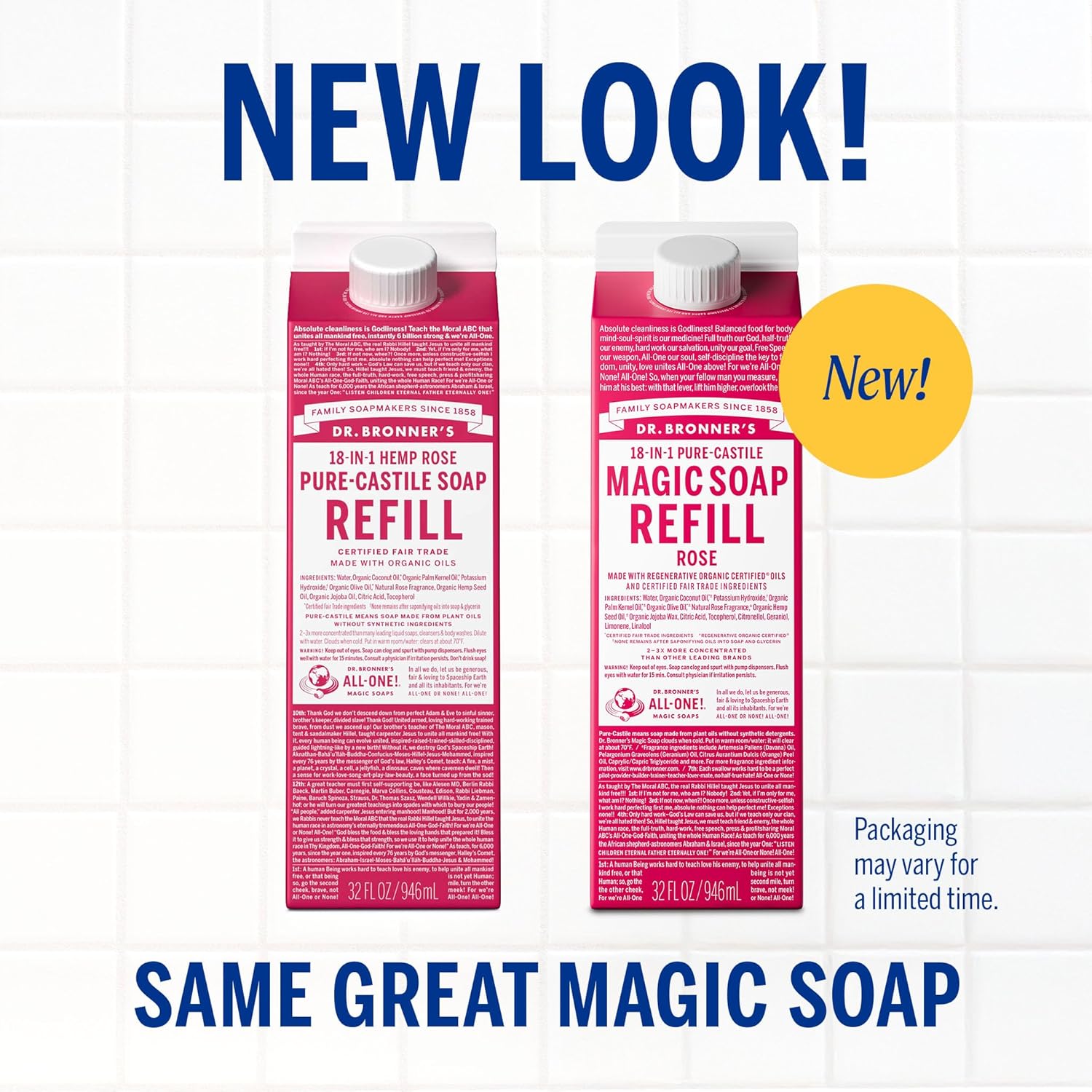 Dr. Bronner's Magic Soap-Pure-Castile Liquid Soap Refill (Rose 32 ounce, 2-Pack)-Regenerative Organic Certified Oils, For Body, Hair, Laundry, Pets & Dishes, Concentrated, Vegan, Non-GMO