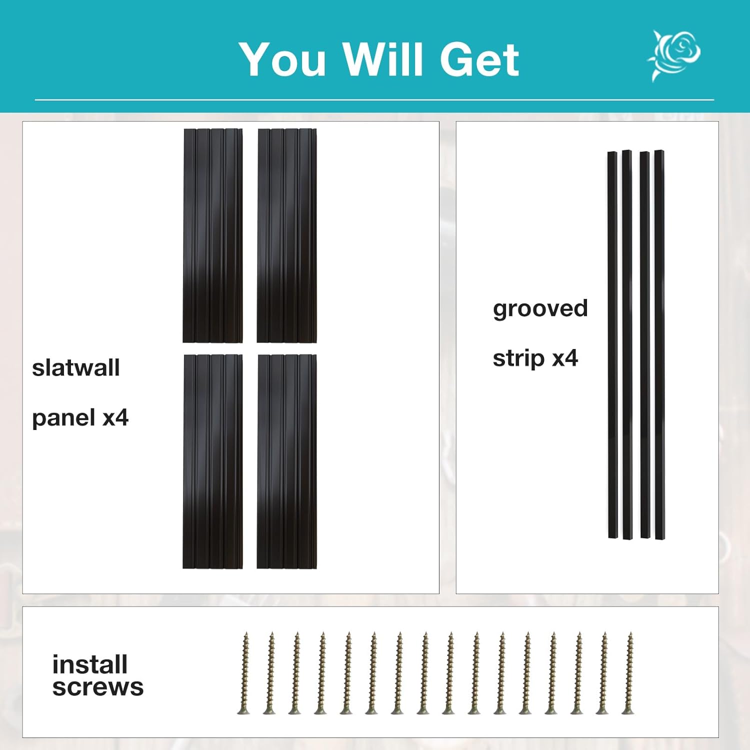 NeatiEase Slatwall Panel Wall Storage Systems, 4 x 4ft Slat Wall Paneling Garage Wall Organizer, Heavy Duty Wall Mounted PVC Wall Rack (Black)