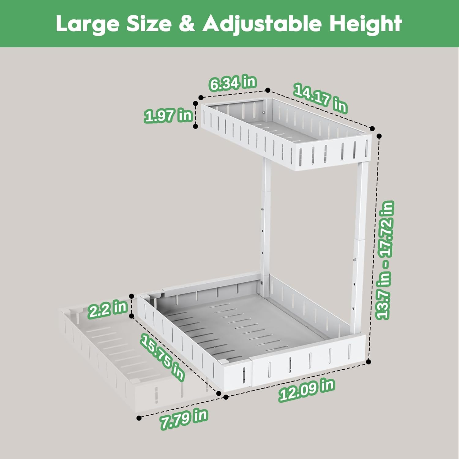 • Height Adjustable: Our kitchen organizers and storage comes with 2 adjustable metal tubes with 3 heights (13.7"/15.75"/17.72") to fit the height of your cabinets and items. Leave enough space for tall bottles