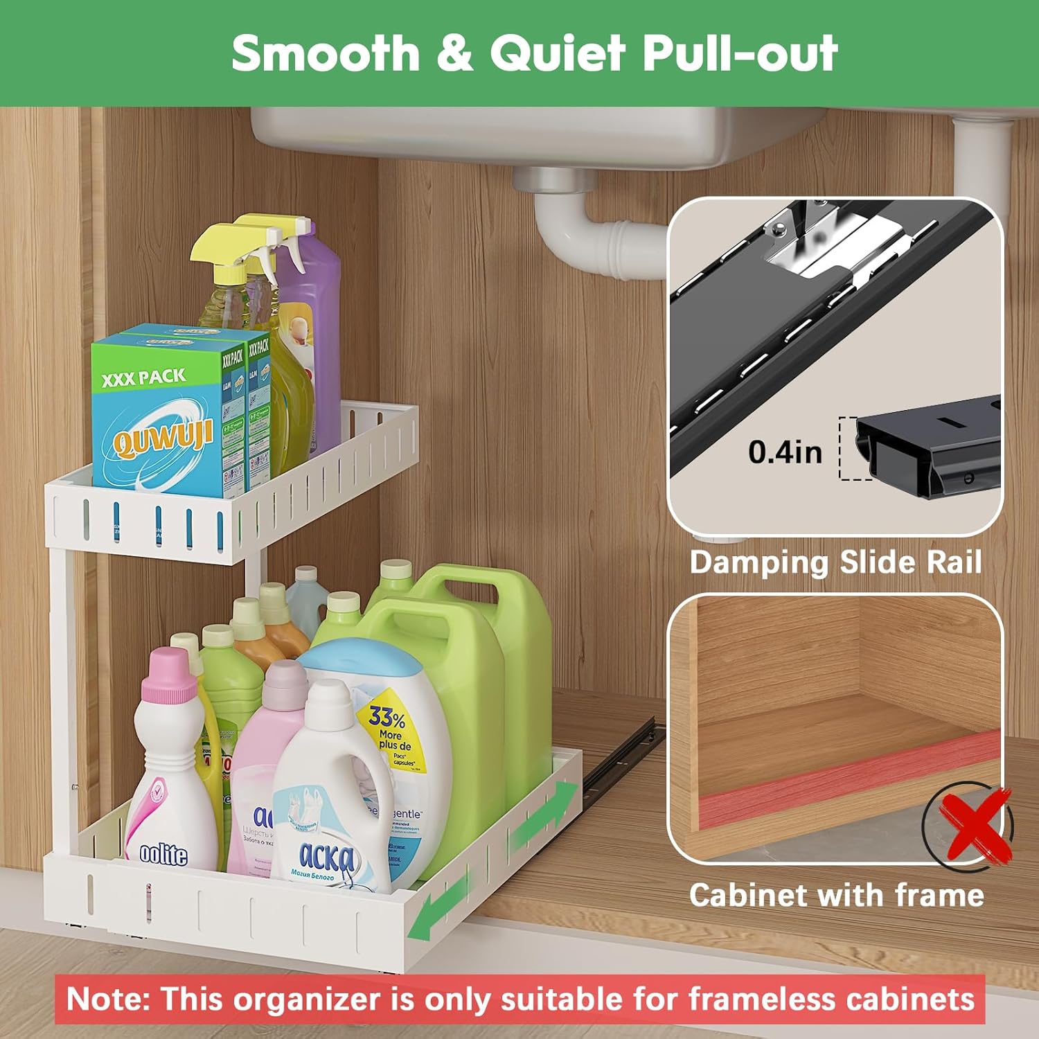 REALINN Under Sink Organizer, 2 Tier Expandable Under Cabinet Organizer, Heights Adjustable Pull Out Storage for Kitchen Bathroom Laundry, White, 2 Pack