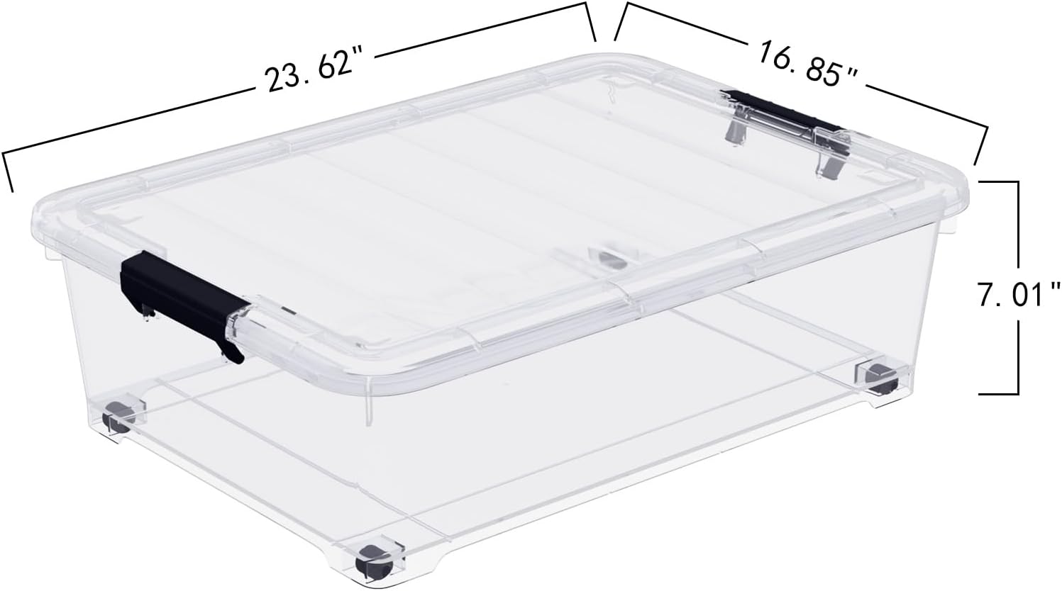 4-Pack 25L Plastic Under Bed Storage Organizer Bin Container with Latch Lids and Wheels, Clothes Storage Box Rolling Underbed, Clear