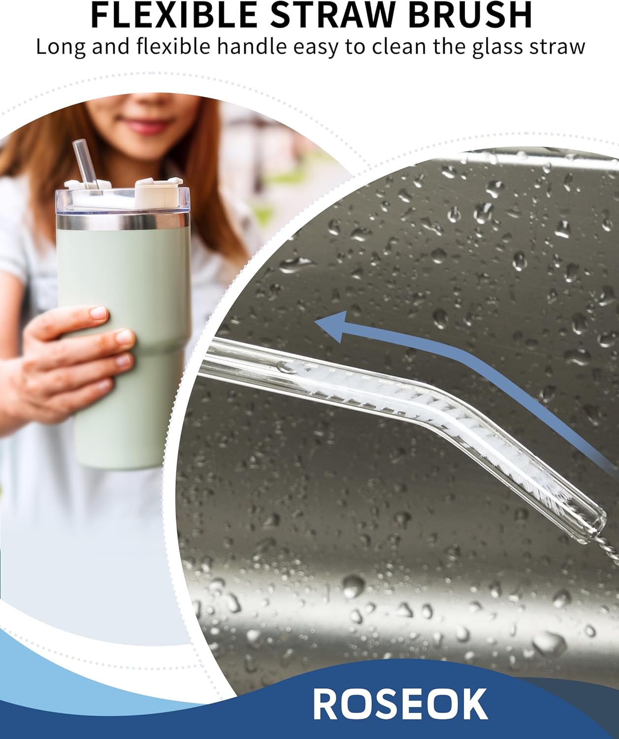 • TWO IN ONE: 2 in 1 bottle brush and straw brush designed with a 304 stainless steel straw brush stores in the larger one. Unscrew the end of thermoplastic rubber handle, there’s a 10.1 inch straw brush.The straw brush is long and flexible,so it can be used to clean the straw.