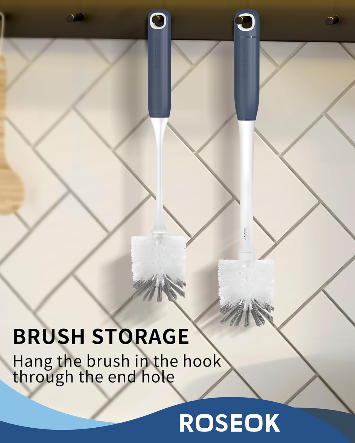 • EASY TO CLEAN AND HANG: The long handle bottle brush is 13.3 inch, easy to reach the bottom of bottles to clean the corner. The brush is also easy to clean, just rinse with water, and it can also be washed in the dishwasher. There's a hole at the end of the handle. You can hang it on the hook to dry after cleaning without taking up extra space in the kitchen.