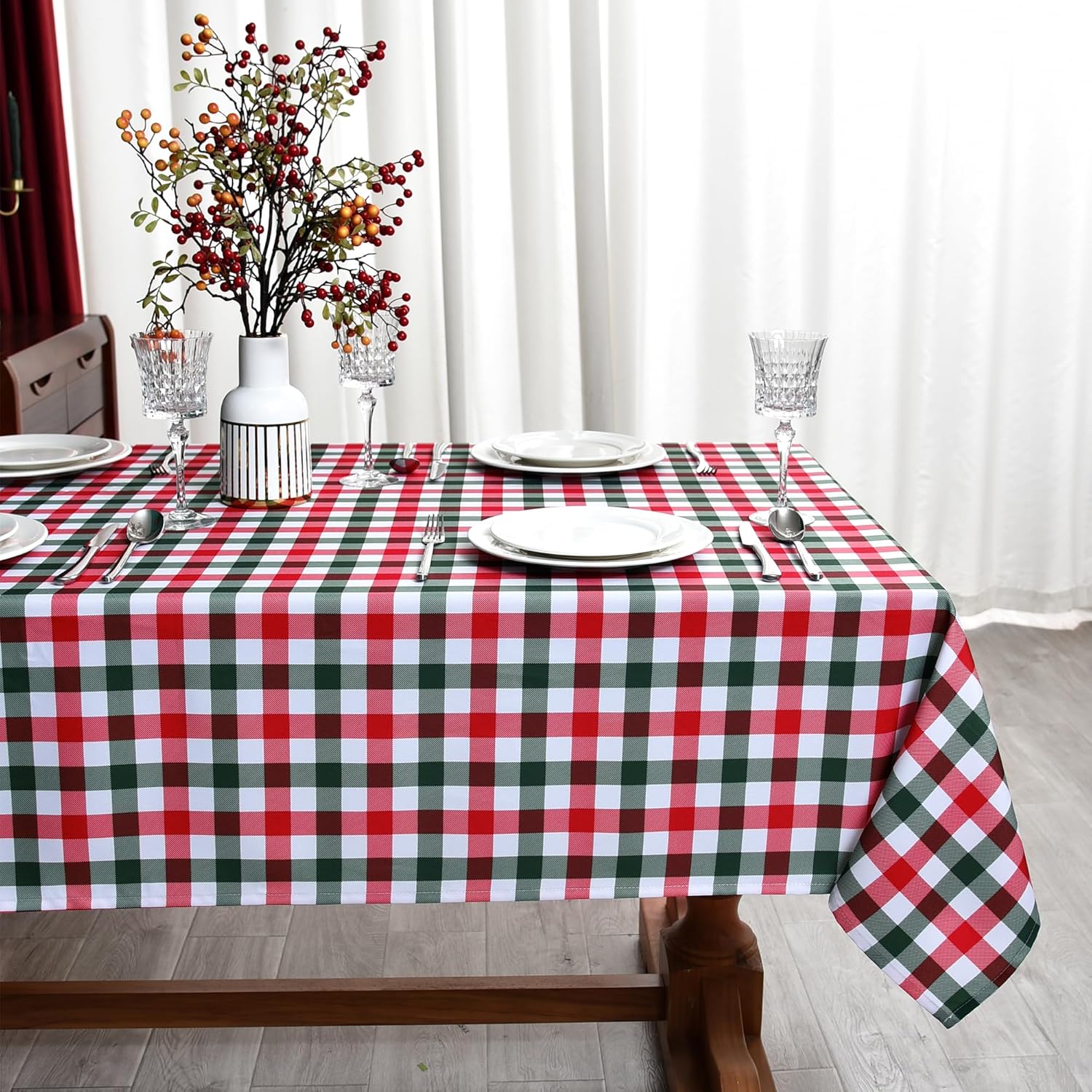 Red Gingham Christmas Plaid Tablecloth - Rectangular 58x102 Inch Water Resistant Table Cloth for Indoor/Outdoor Use - Holiday Table Cover for Kitchen, Picnics, and Parties