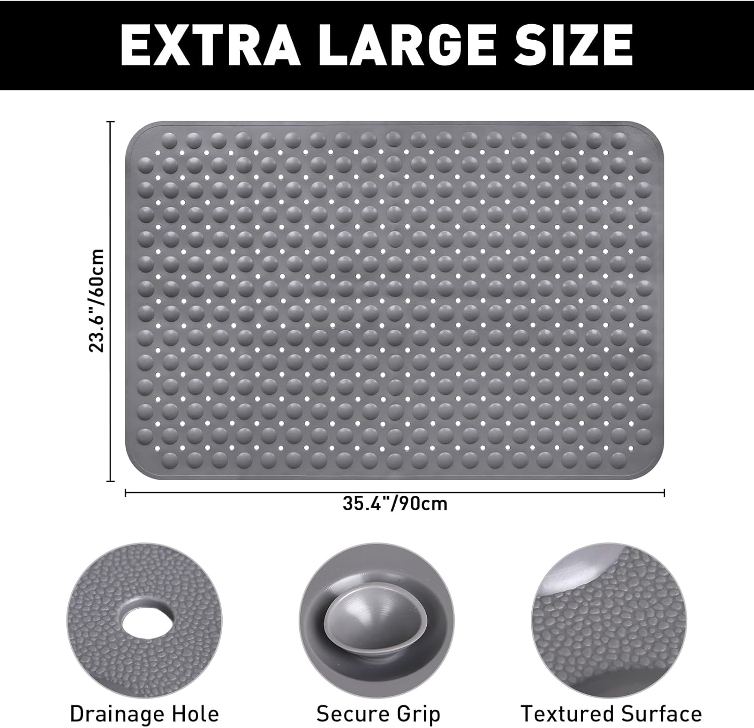 Shower Mat Non Slip: 35.4 x 23.6 Inch Extra Large TPE Shower Mats for Inside Shower - Anti Slip Shower Stall Matt with Drain Hole and Suction Cups for Elderly