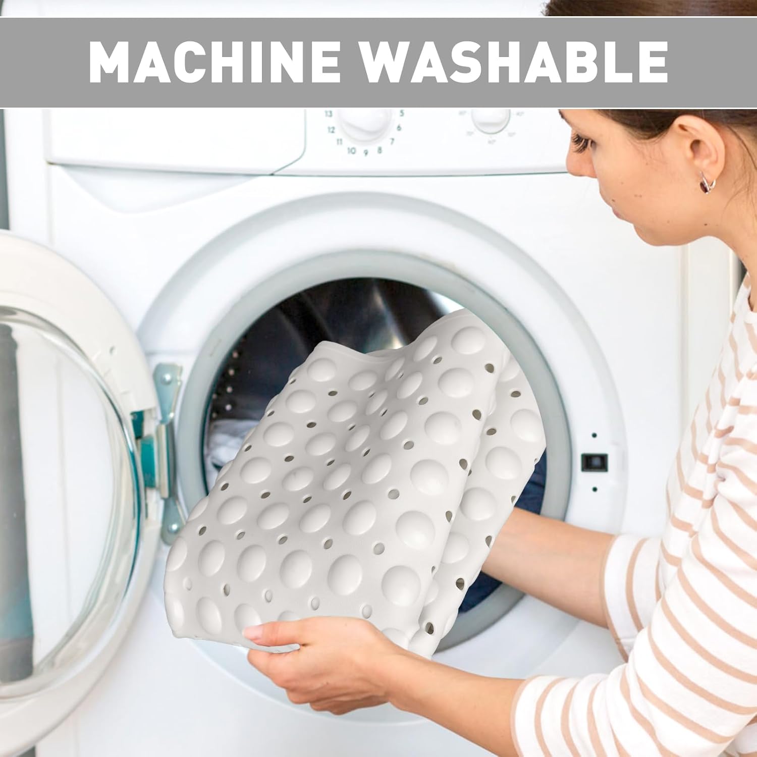 • EASY TO CLEAN: Simply rinse with the shower head or place the shower mat in the washing machine with a neutral detergent (no bleach) and air dry. Tip: To extend the service life of shower non slip mat, we recommend that you rinse and dry the non slip shower mats after each use