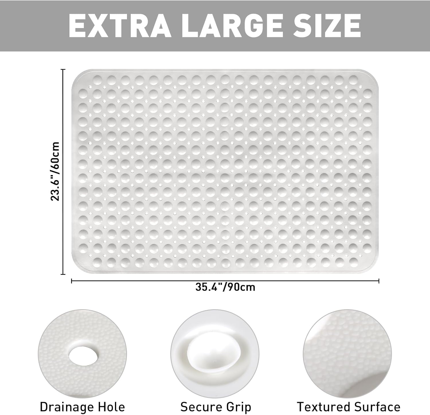 Shower Mat Non Slip: 35.4 x 23.6 Inch Extra Large TPE Shower Mats for Inside Shower - Anti Slip Shower Stall Matt with Drain Hole and Suction Cups for Elderly