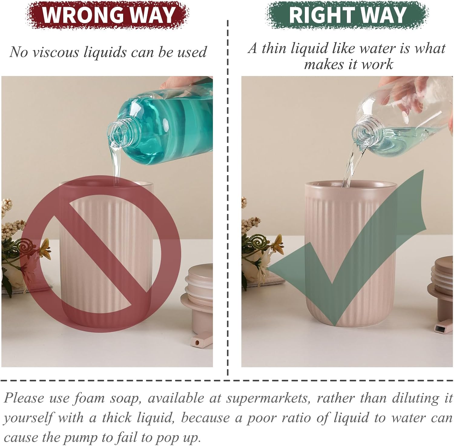 • Multi-use: The khaki soap dispenser used for foam hand soap filler and foam dish soap filler. And after removing the pump head, it can be used as a tumbler or toothbrush holder