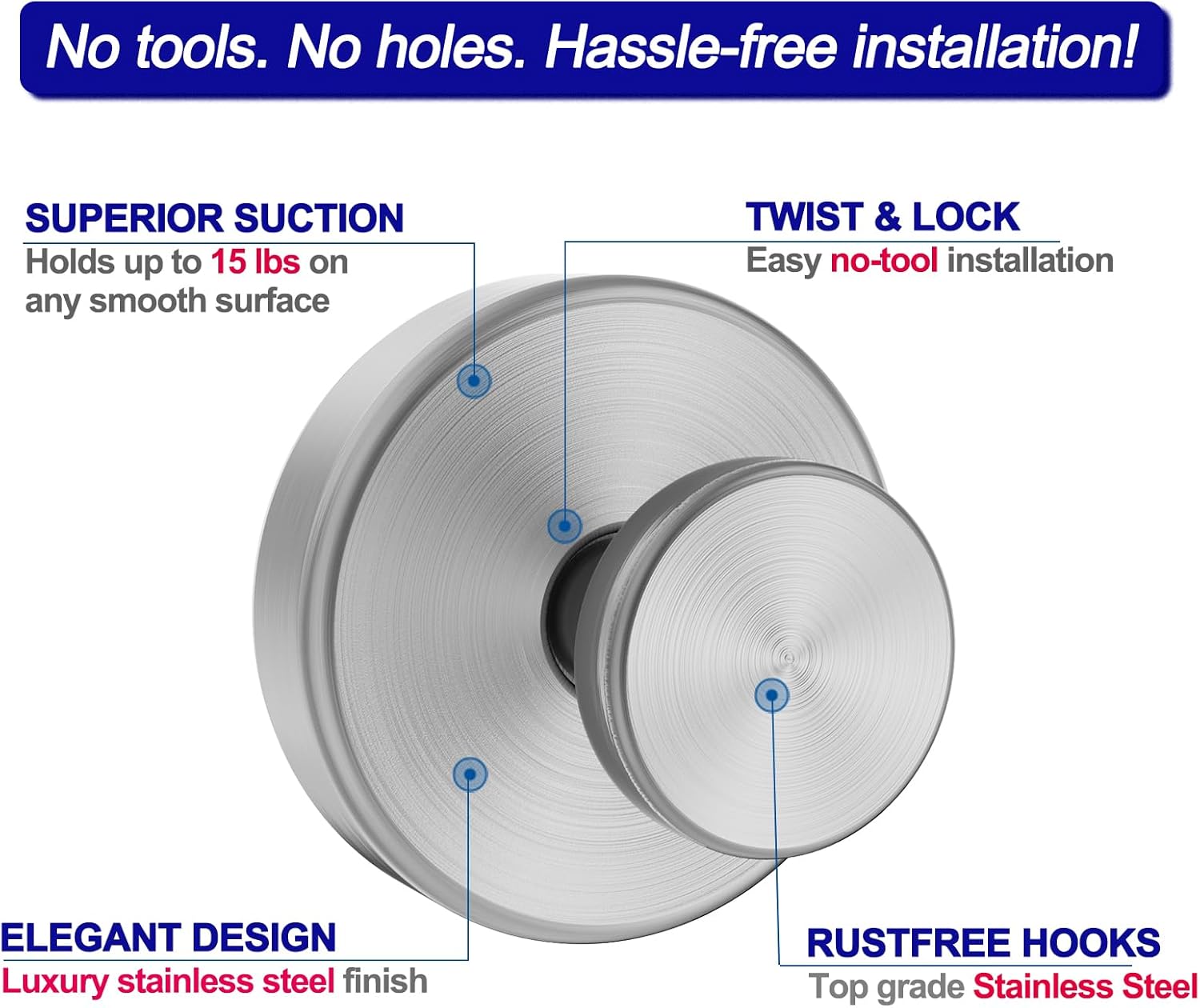 • [​Shower-Safe & Rustproof]: Stainless steel ​shower hooks + super silicone suction base withstand daily steam/water splashes. Removable without residue - ideal for renters' ​towel hook needs.