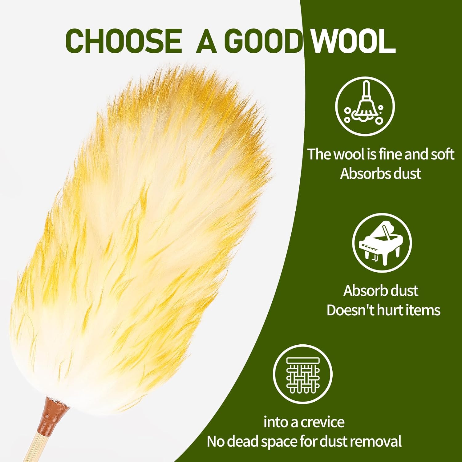 • Premium Natural Lambswool Fibers: Crafted with natural lambswool, the duster attracts dust statically without chemicals, ensuring thorough cleaning on delicate surfaces (e.g., glass, polished wood, electronics). Soft fibers prevent scratches and trap fine particles effectively