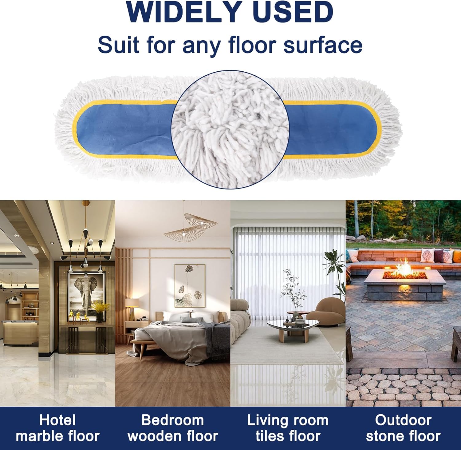 • ⭐24 Inch Large Commercial Dust Mop Head: Super absorbent, deep cleans and absorbs dirt, water, dust, hair, debris, etc., perfect for use as a wet mop or dry mop, saves your time, machine washable and reusable, helping you save money and reduce waste!