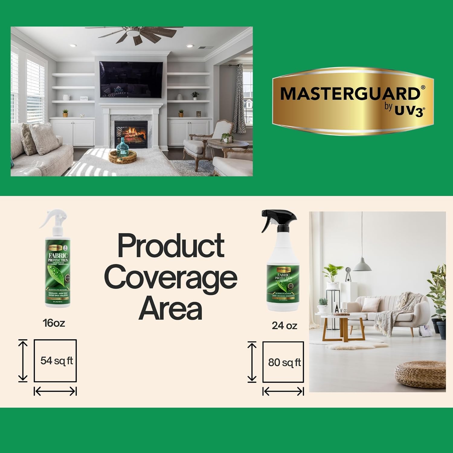 • Ultimate Fabric Protection: Guards against spills, stains, dirt, and UV rays to keep your fabrics looking pristine and new for longer periods. Ideal for fabric stain protection and upholstery protection. Masterguard creates a layer of protection that prevents dust from causing additional wear and increases the strength and life of the fabric